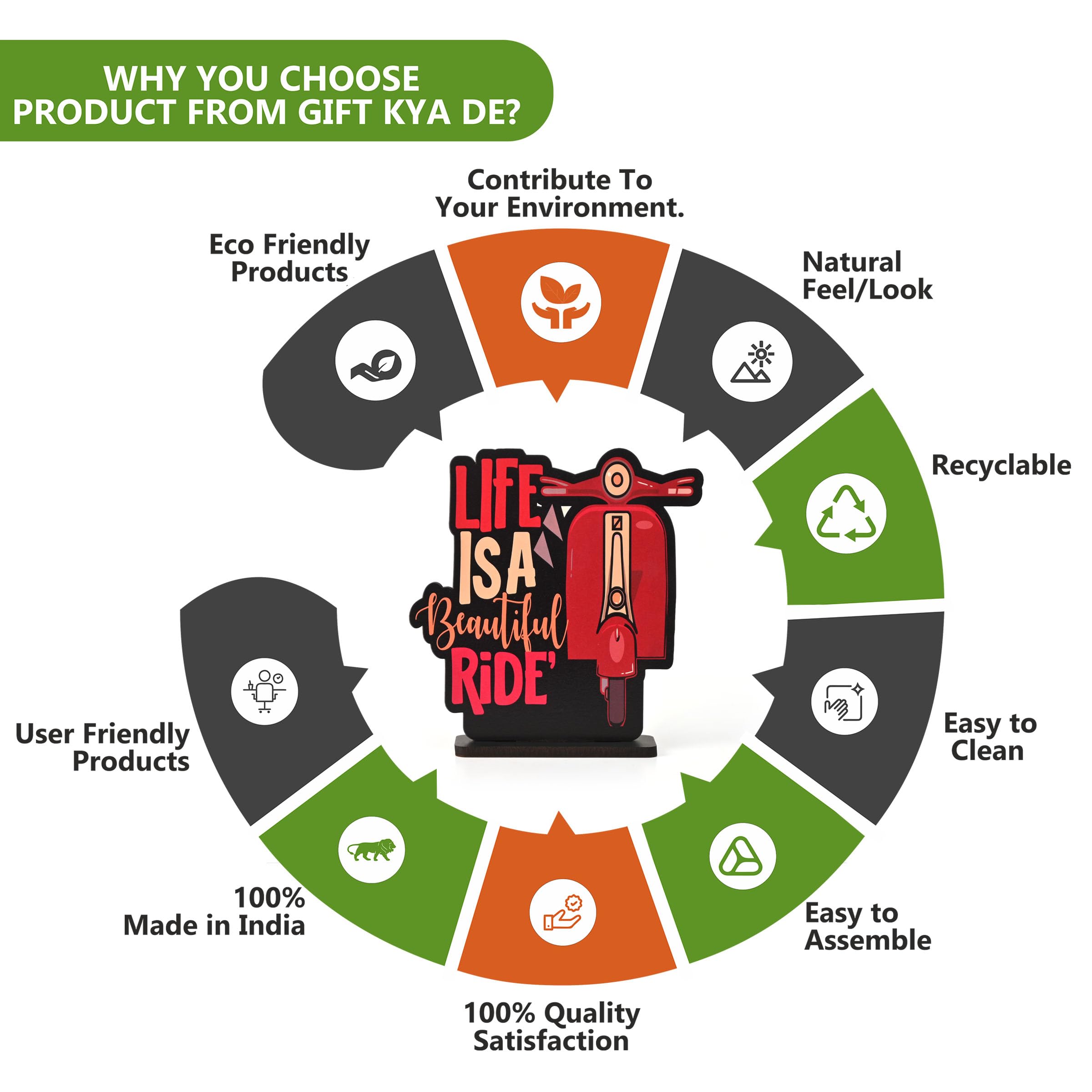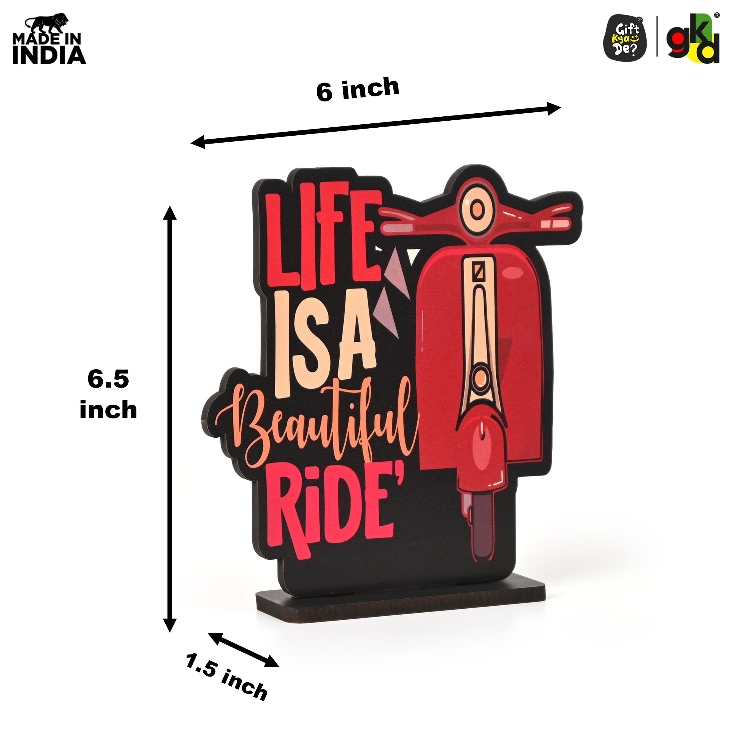 - Motivational Quote Table Top – Features the inspiring quote “Life is a Beautiful Ride” with a vibrant scooter design, adding positivity and style to your desk.