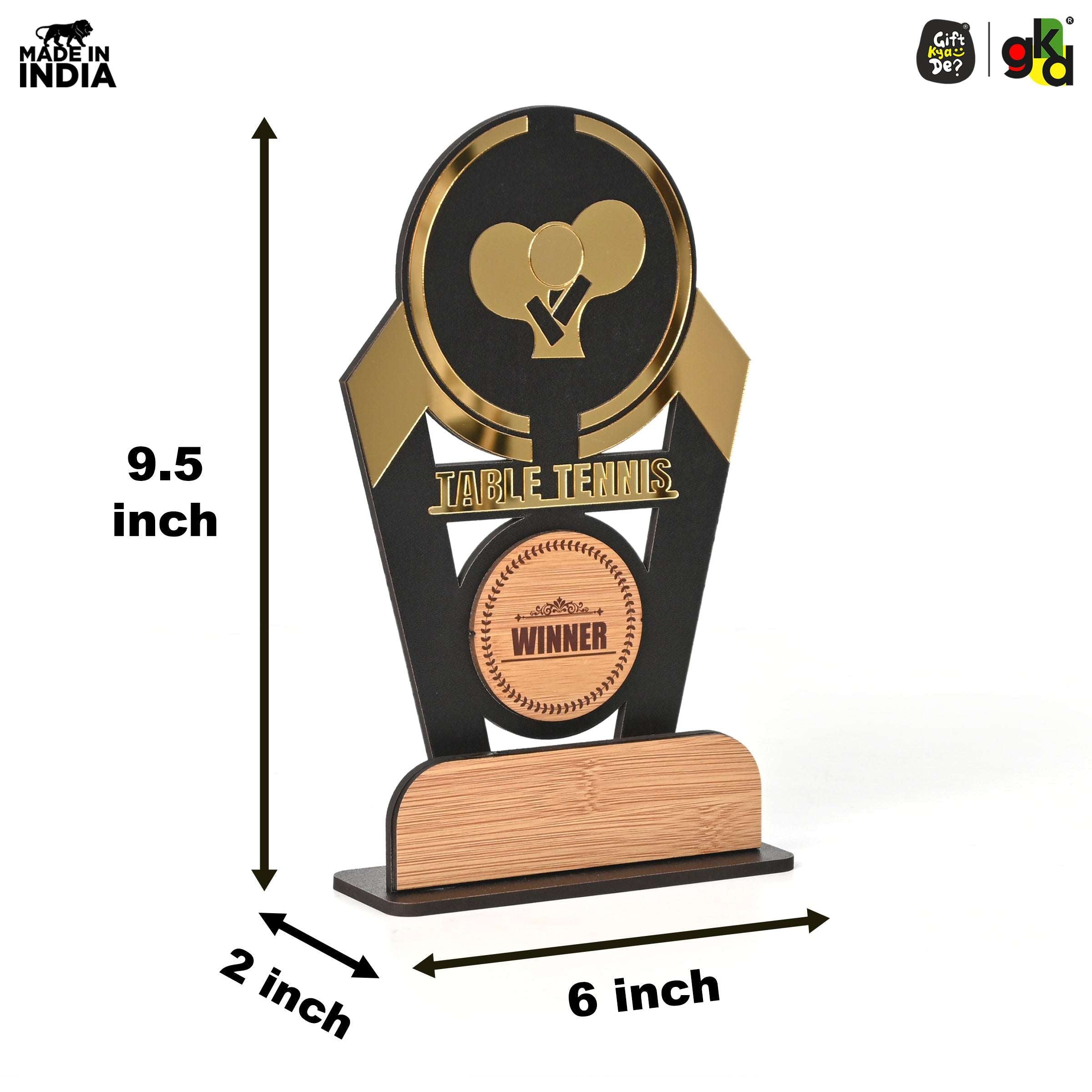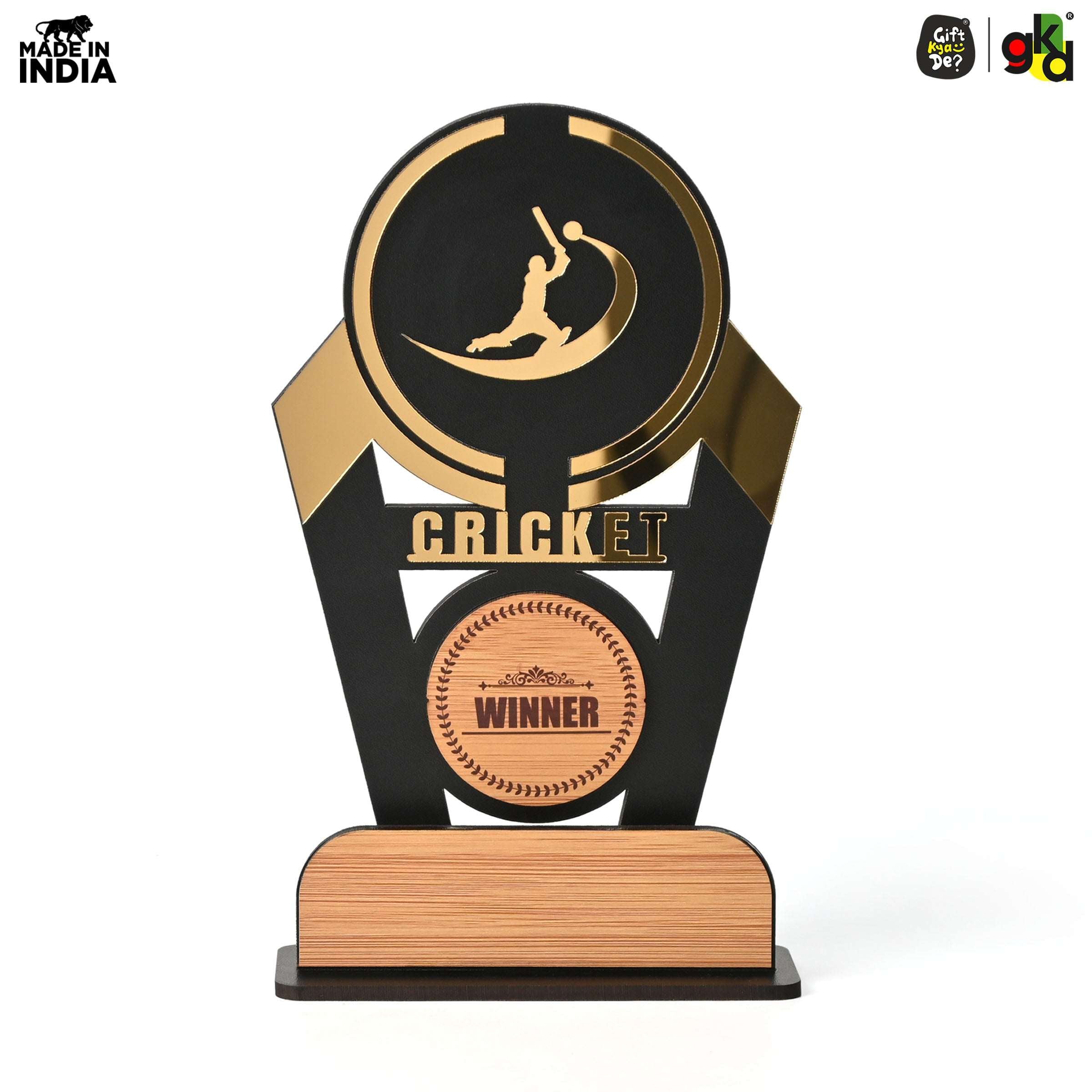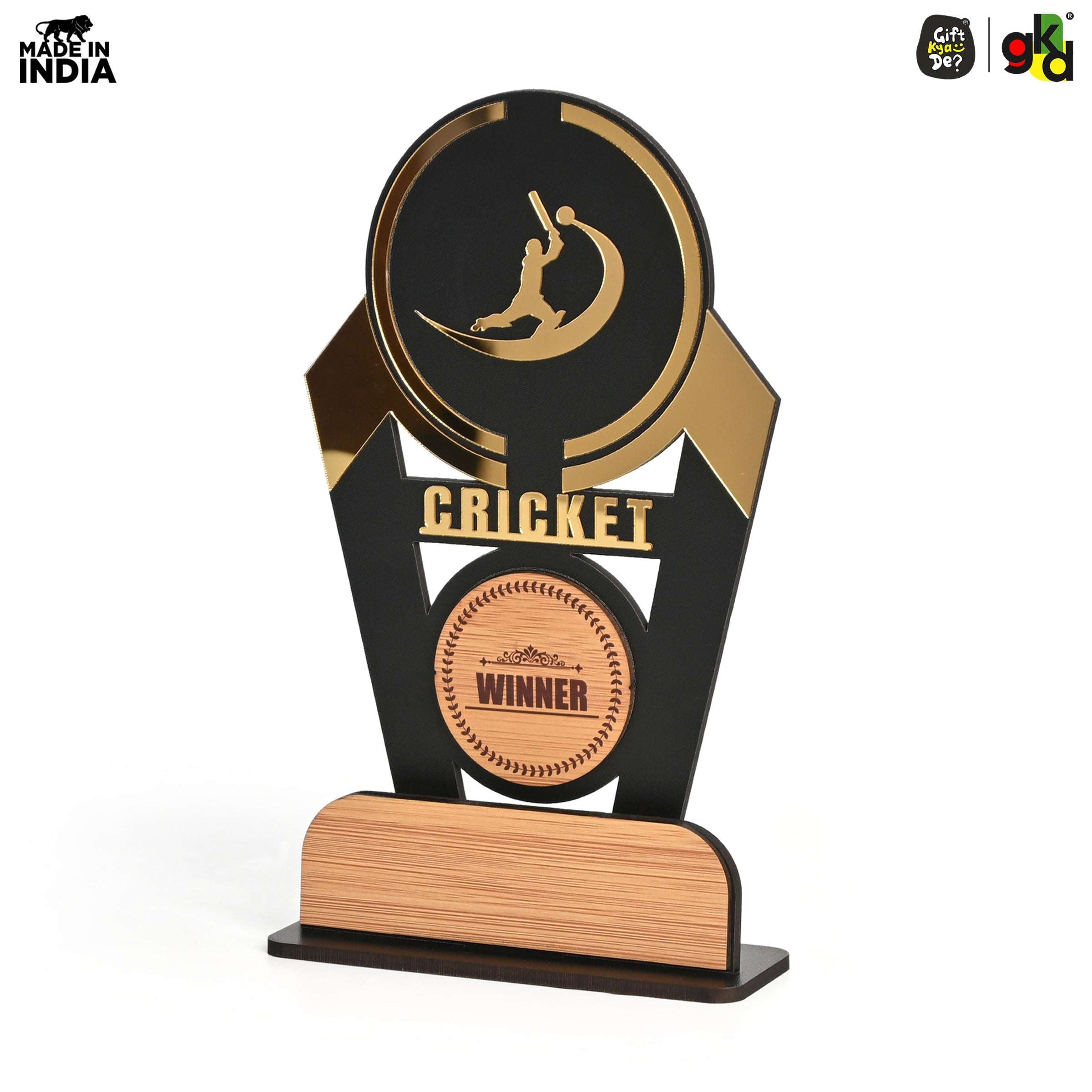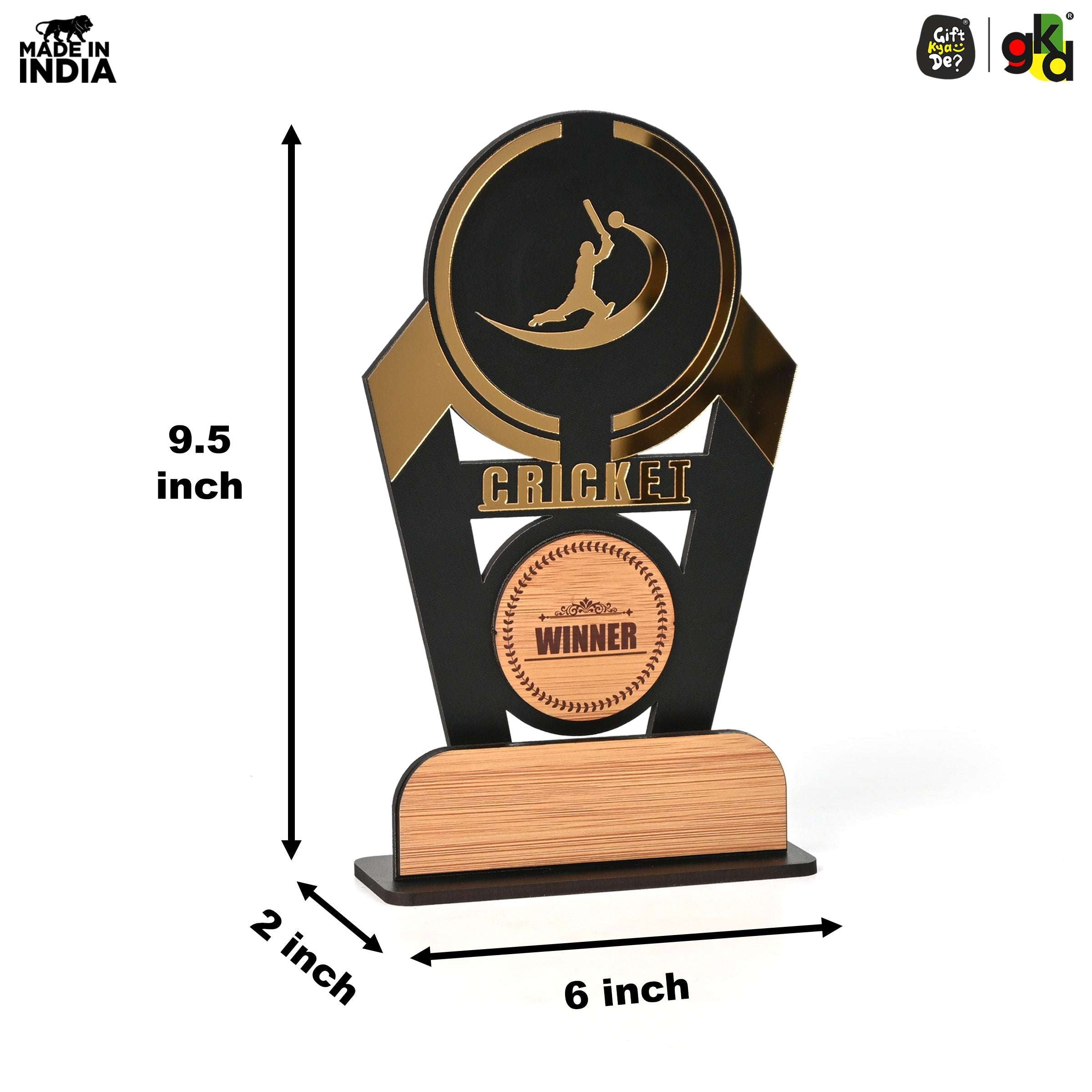 Wooden Sports Winner Trophy - Cricket, Football, Table Tennis, Yoga, Basketball | 9.5 x 6 Inches | School, College & Corporate Events