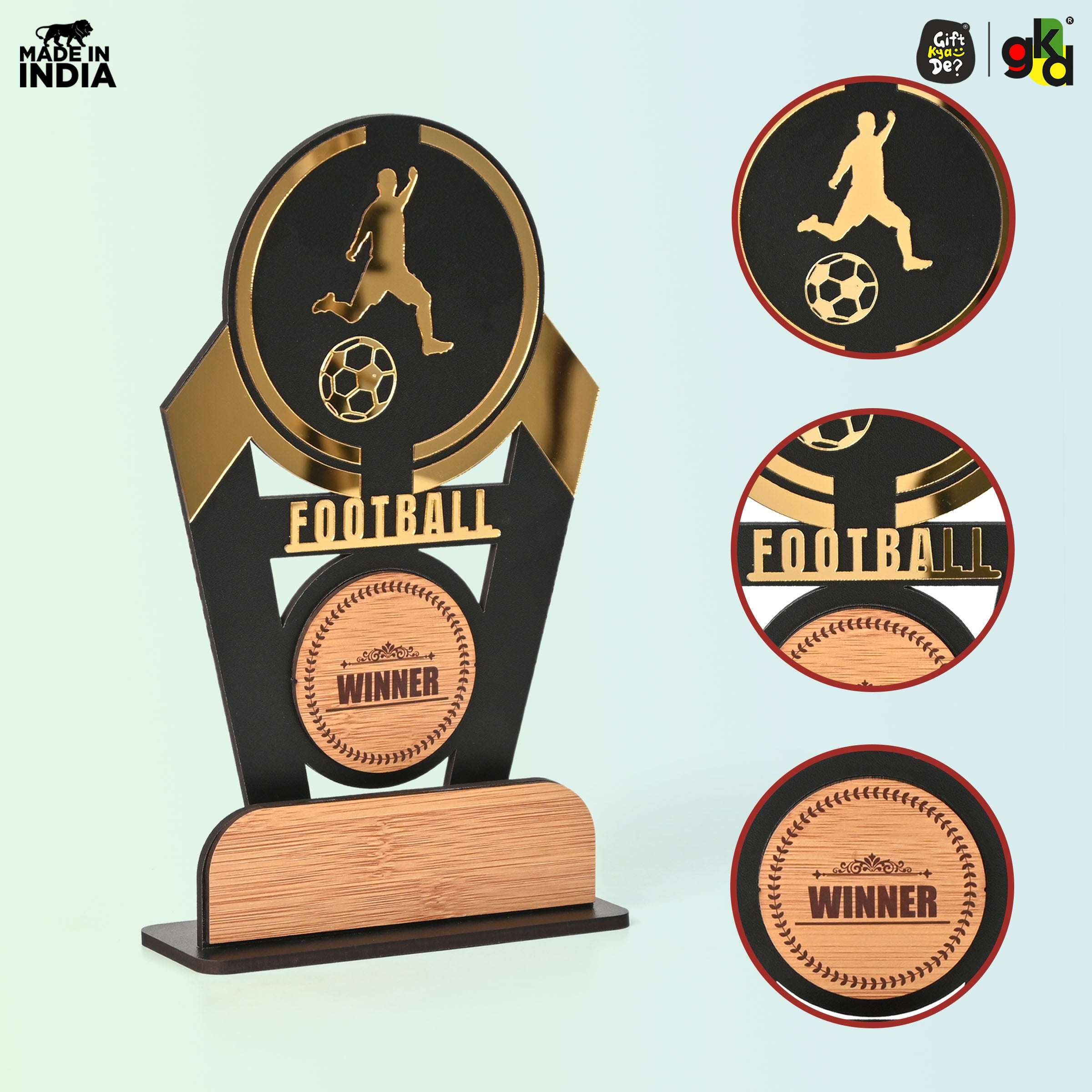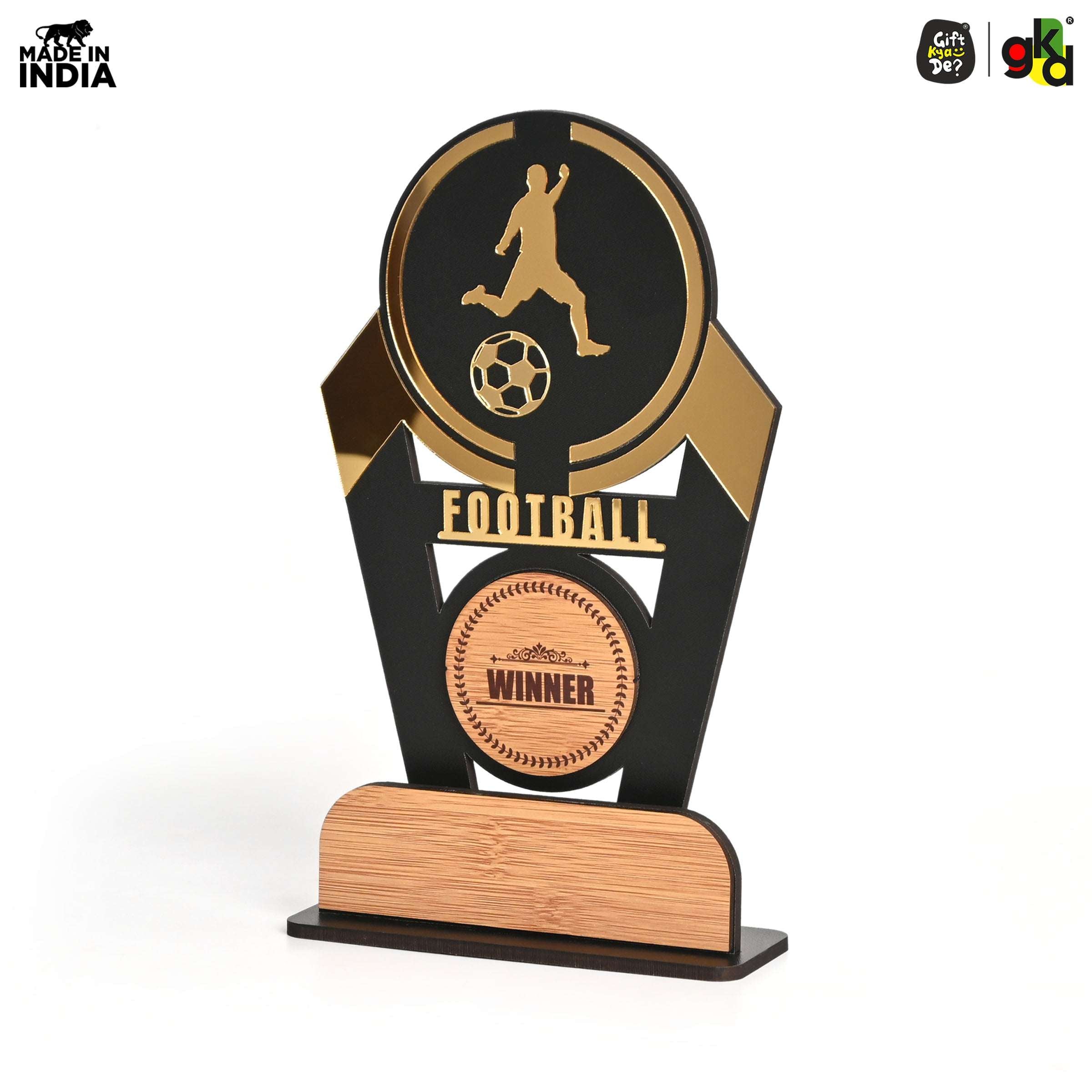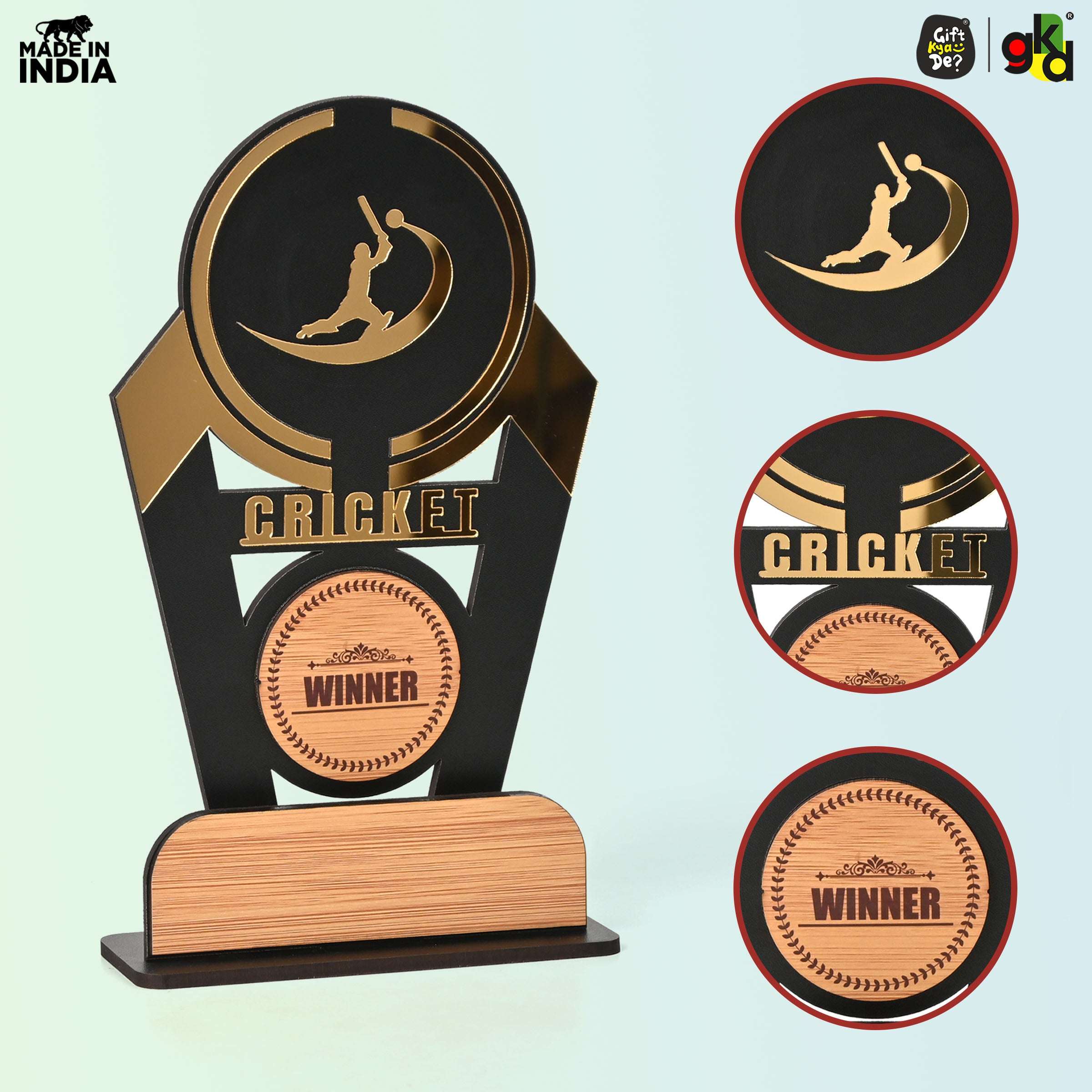Wooden Sports Winner Trophy - Cricket, Football, Table Tennis, Yoga, Basketball | 9.5 x 6 Inches | School, College & Corporate Events