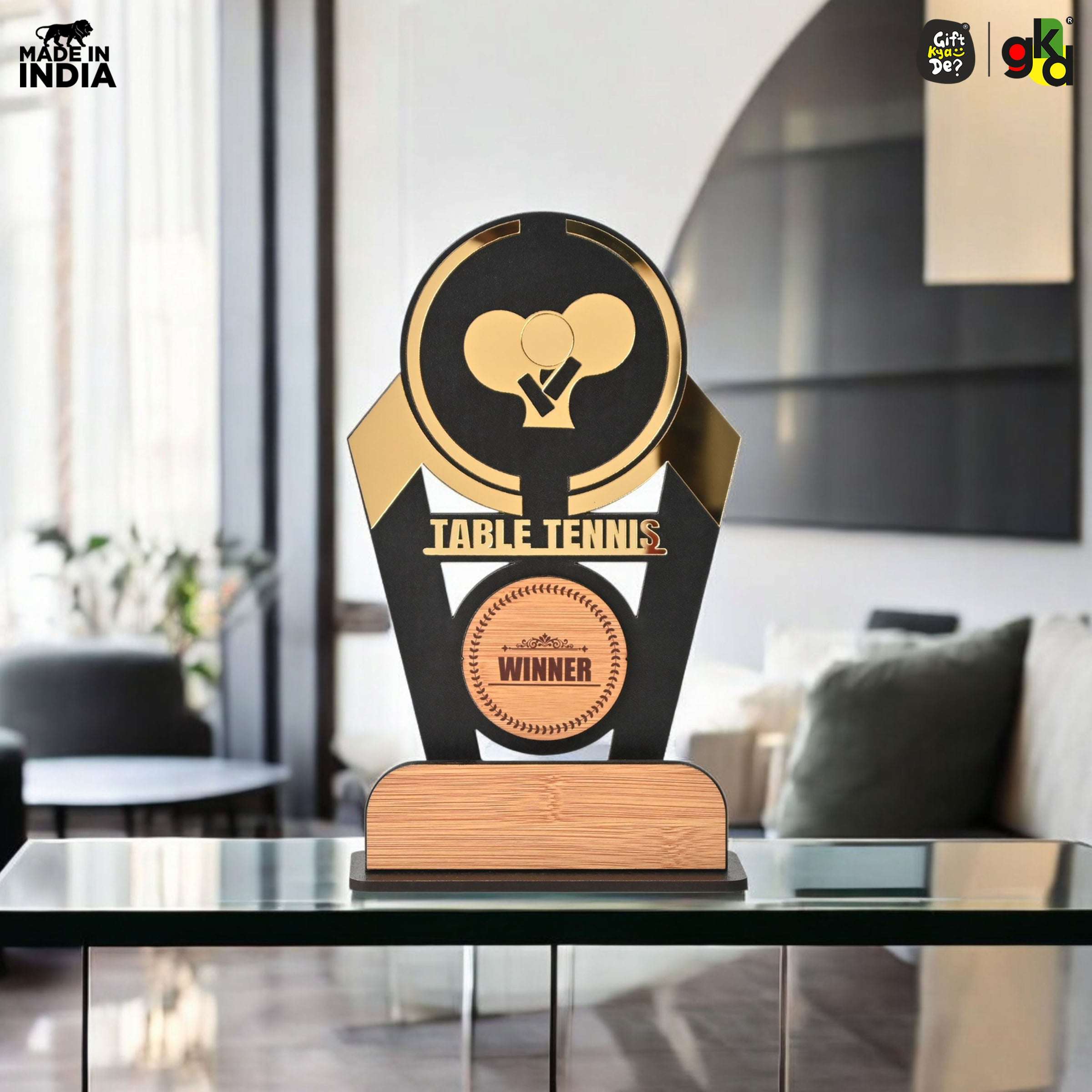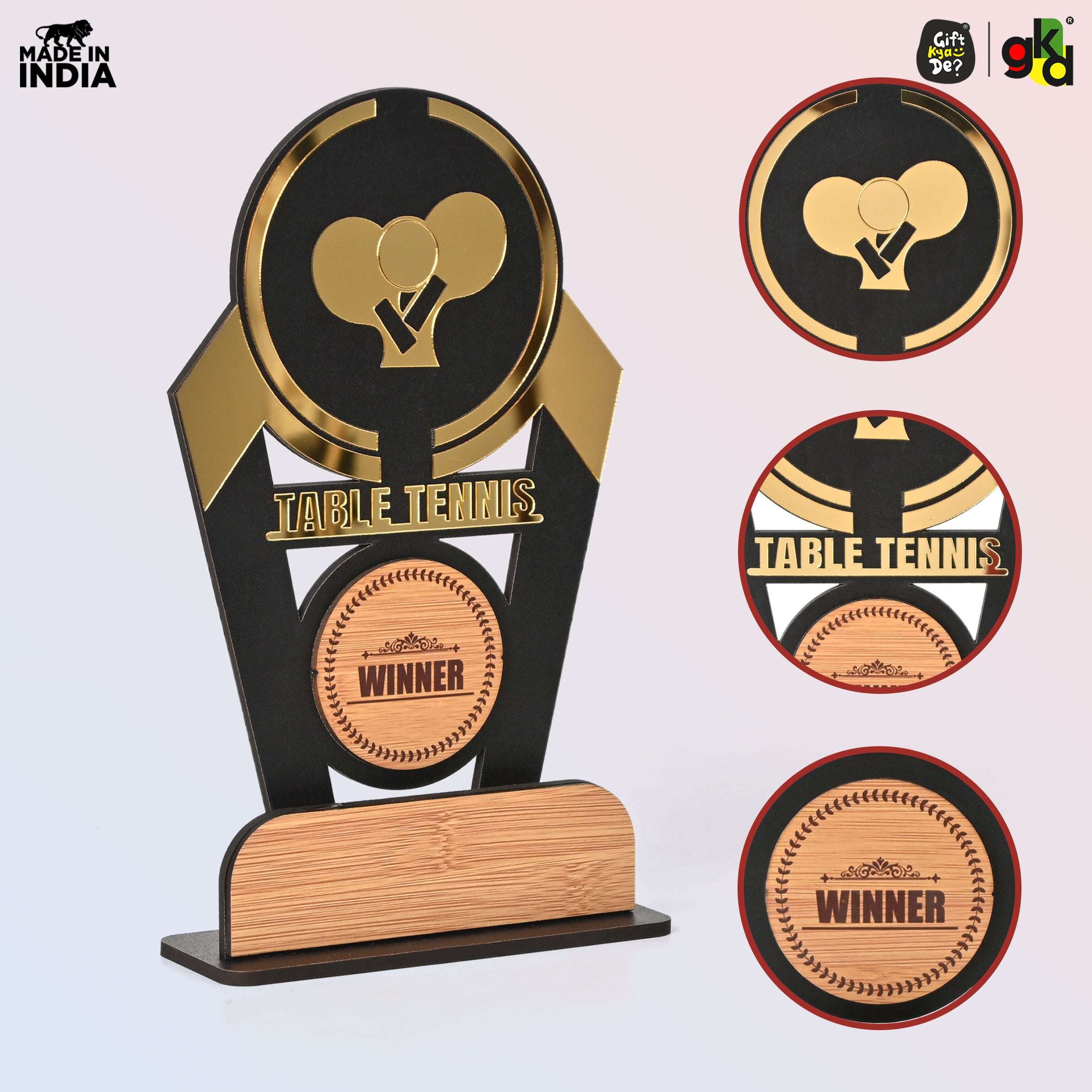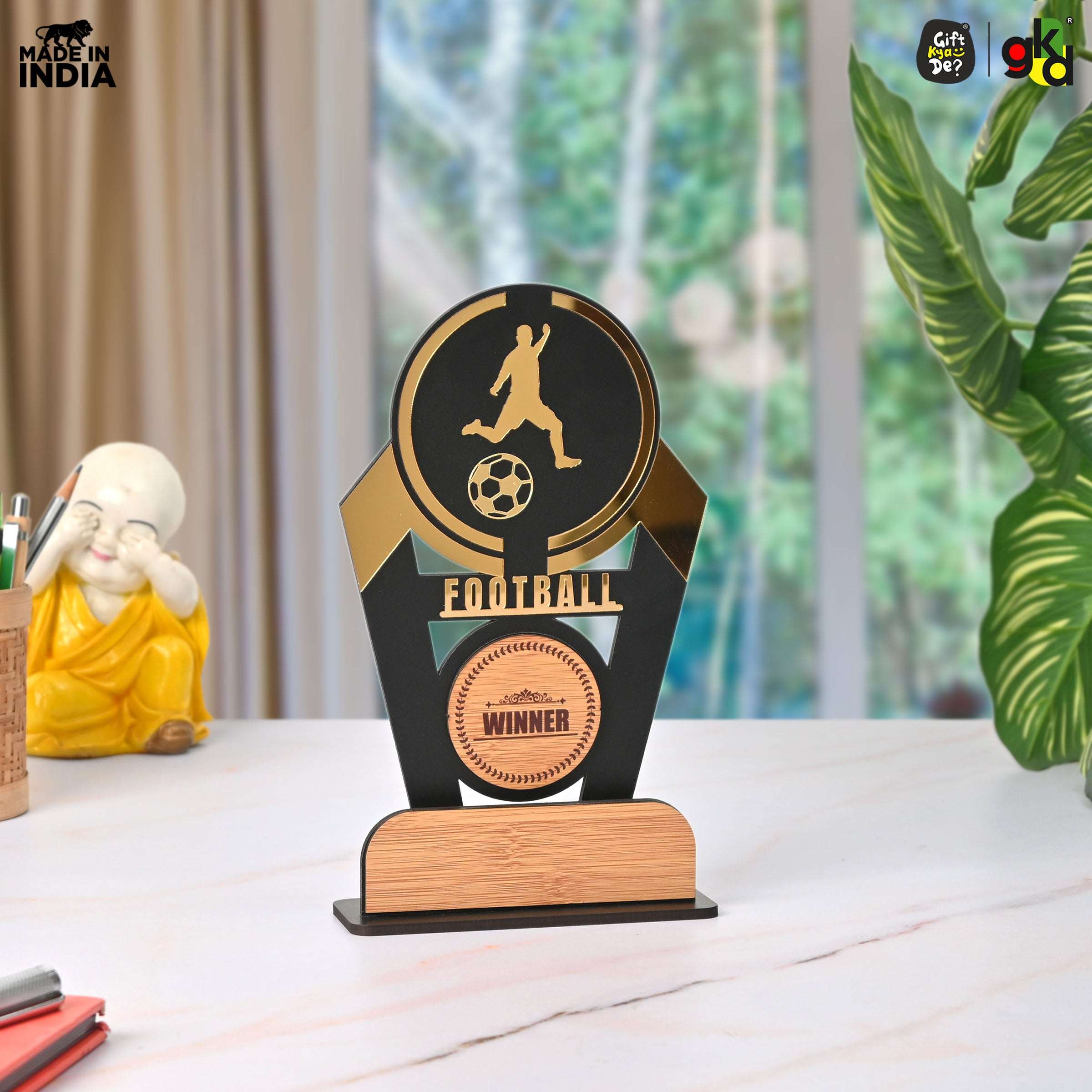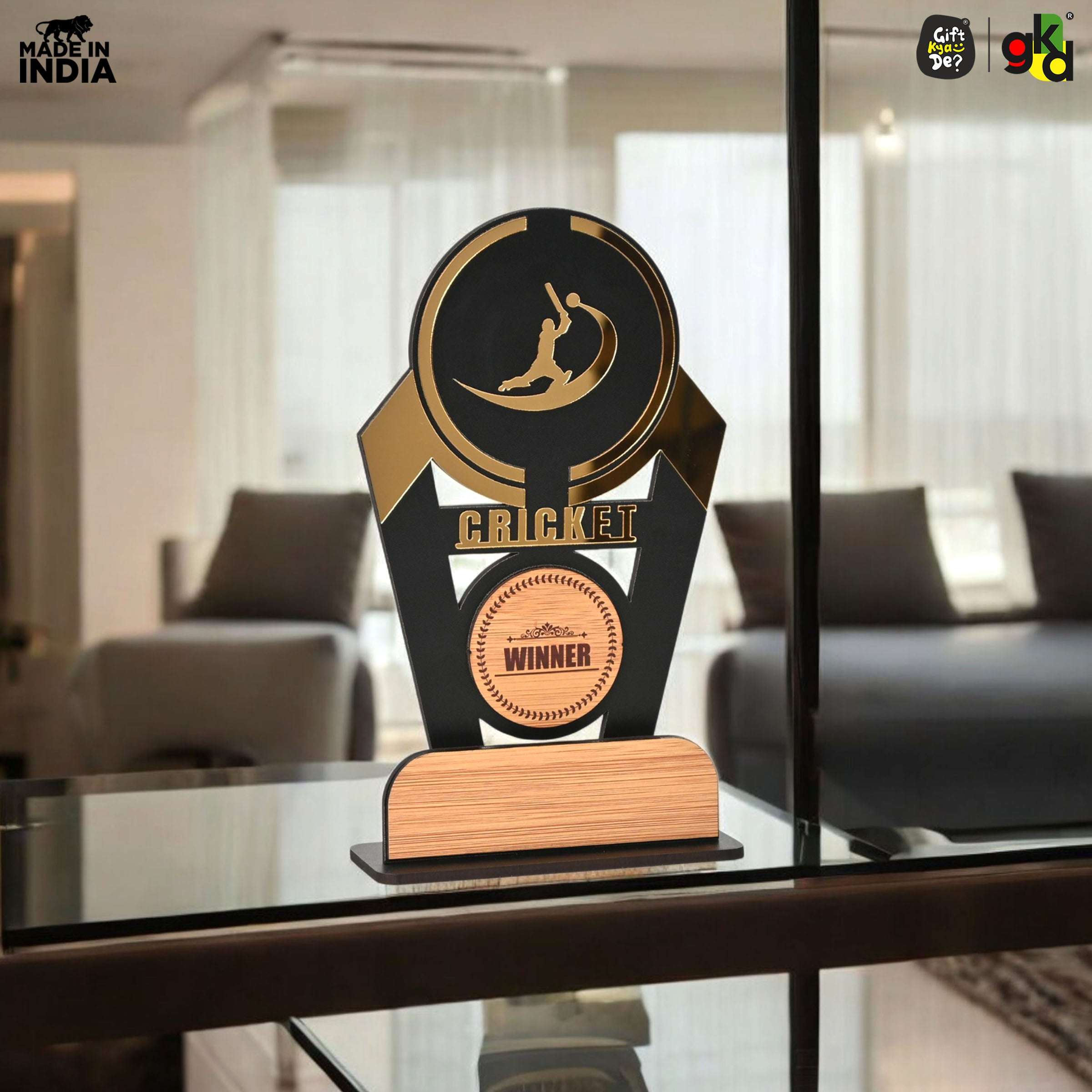 Wooden Sports Winner Trophy - Cricket, Football, Table Tennis, Yoga, Basketball | 9.5 x 6 Inches | School, College & Corporate Events