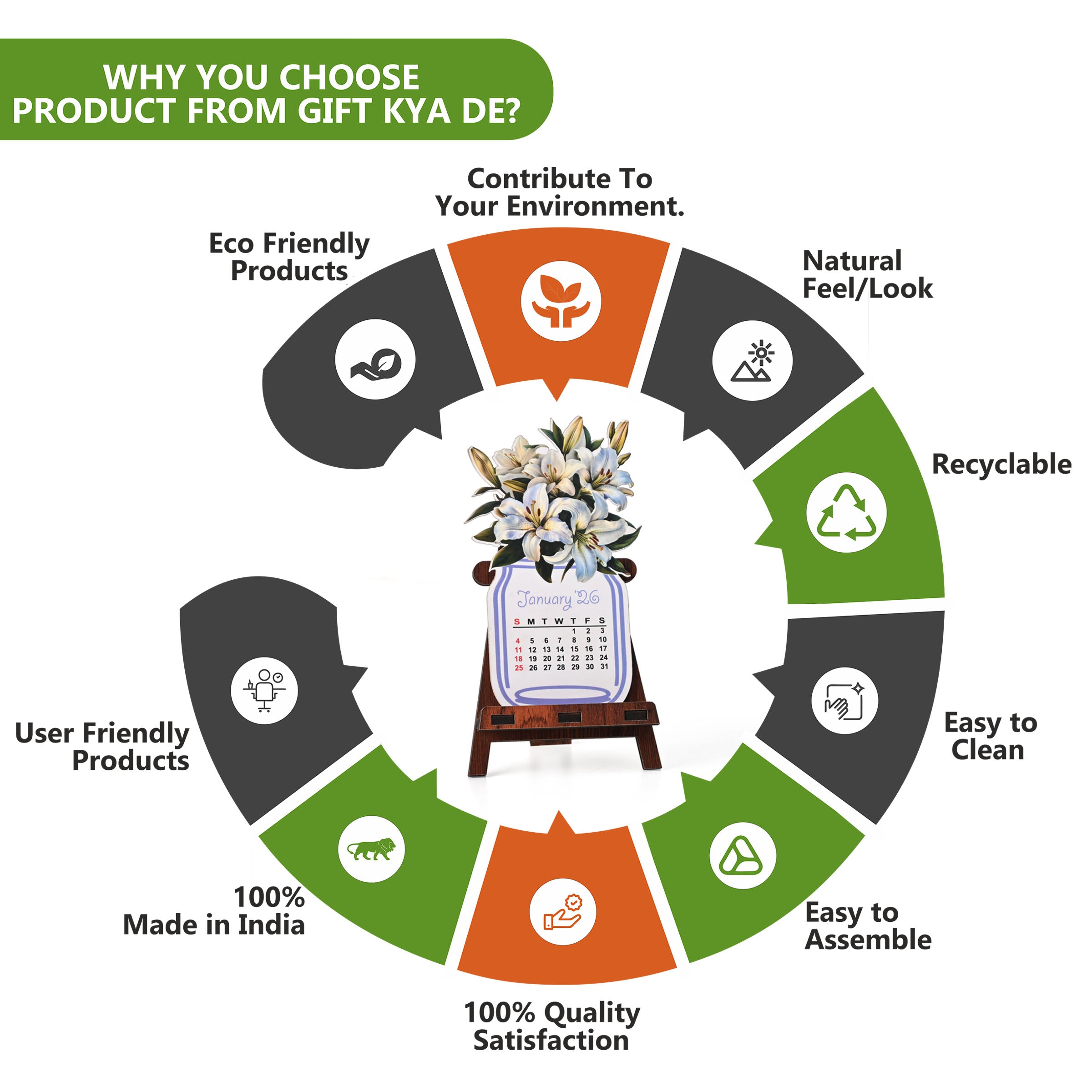 ✅ Eco-Friendly & Reusable Stand – The wooden stand can be reused for future calendars, notes, or even as a mobile holder, making it a sustainable gifting choice.