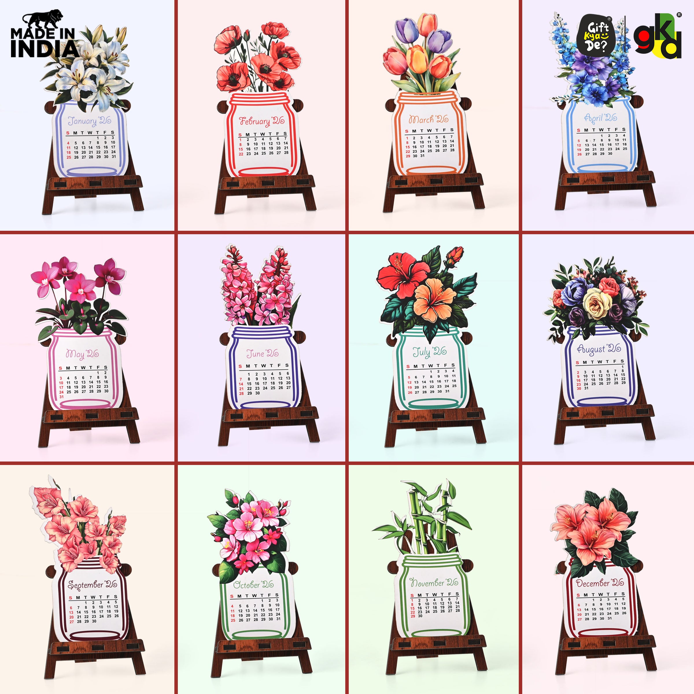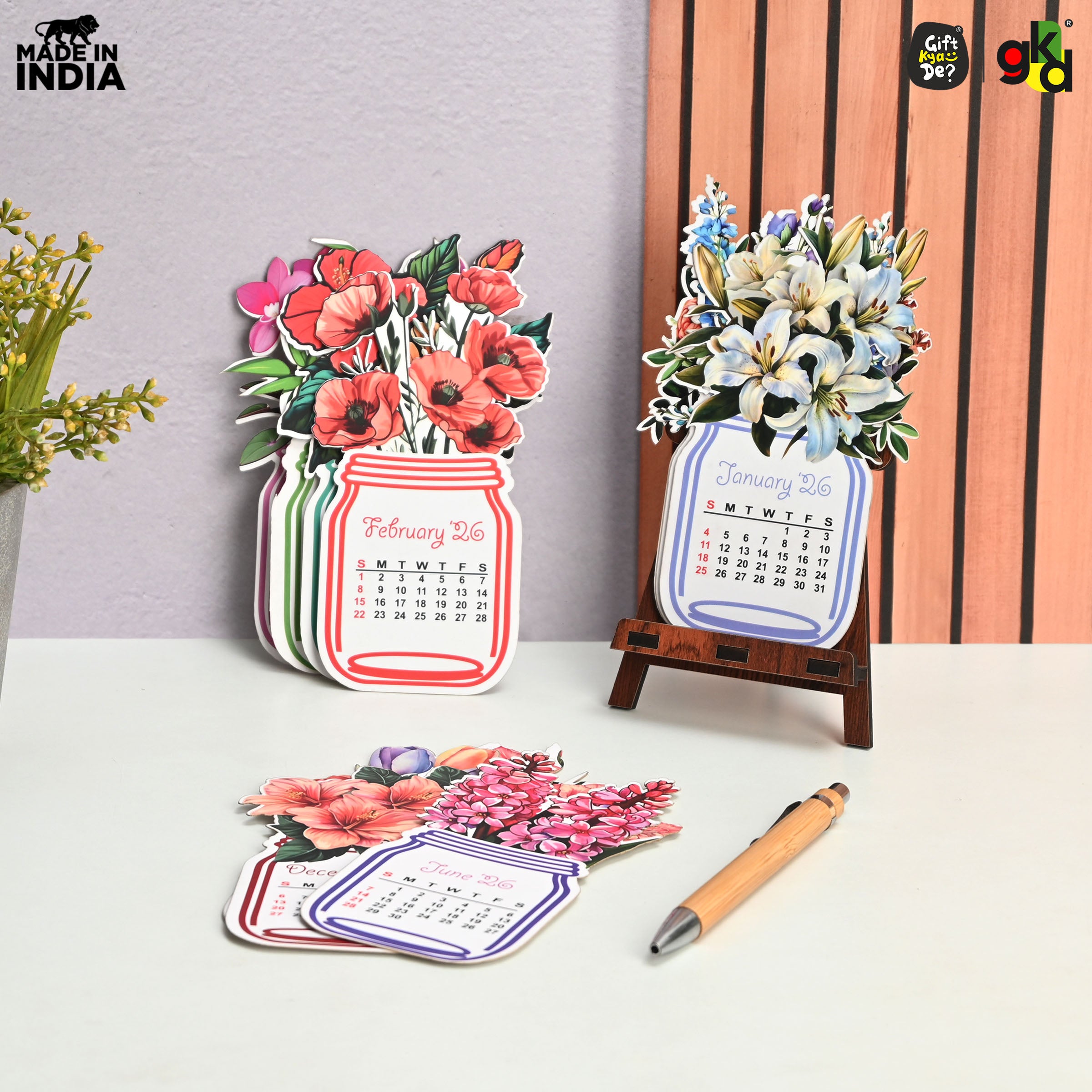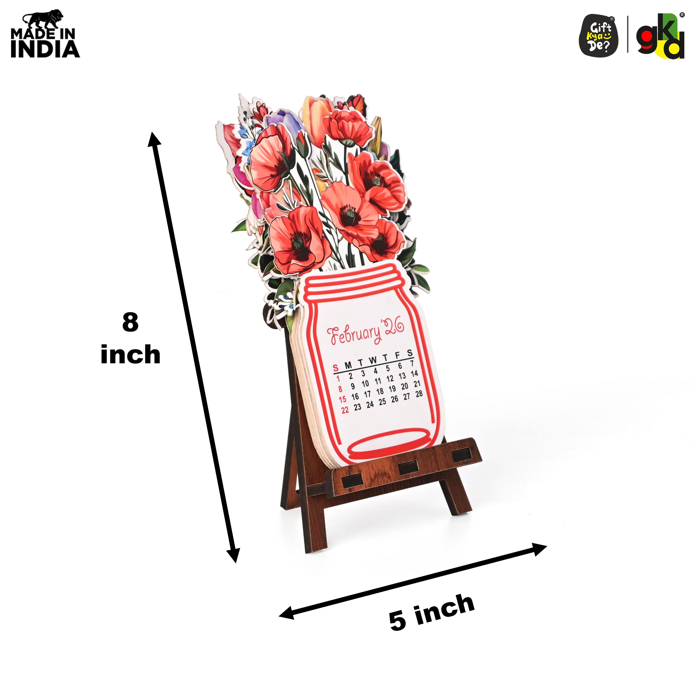 Floral Desk Calendar 2026 | Paper Calendar with Wooden Stand | Perfect for Home & Workspaces