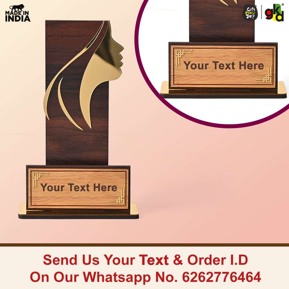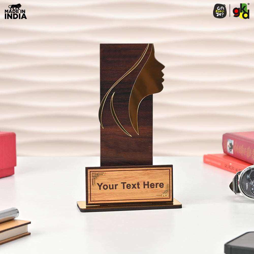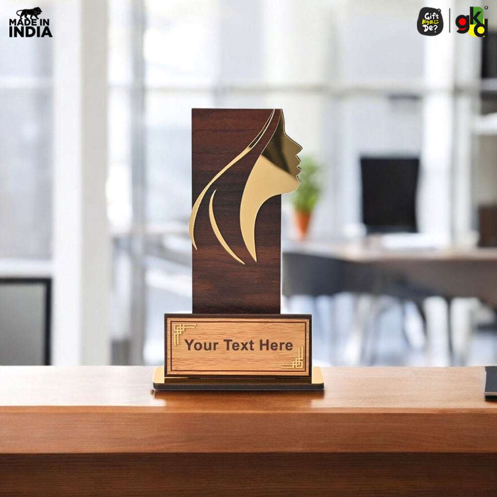 Women's Award Trophy – MDF Wood & Acrylic Memento | Customizable Recognition Gift (Black/Wood)