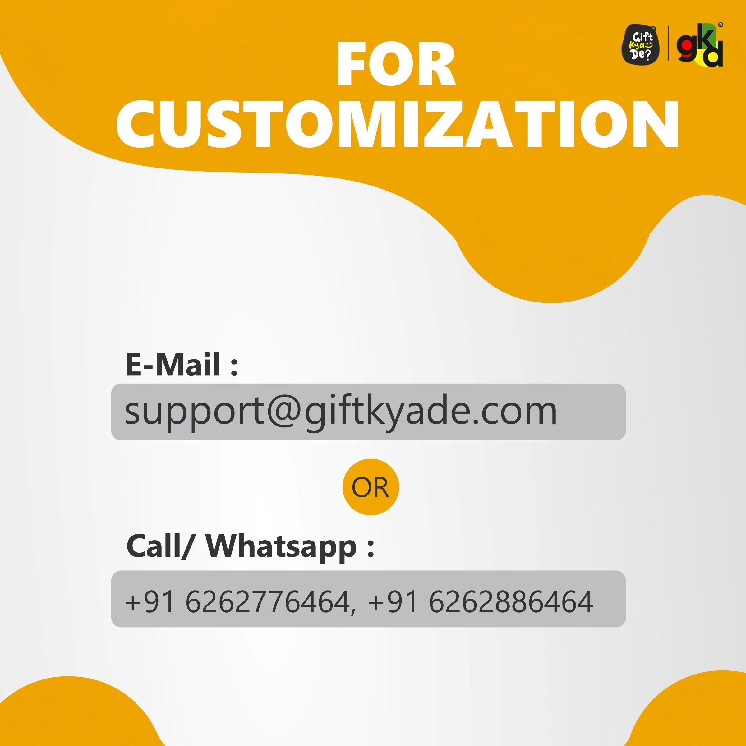 For Custom photo-printed order, Please send us your Photo/Logo & Order I.D on our WhatsApp No. +91-6262776464.