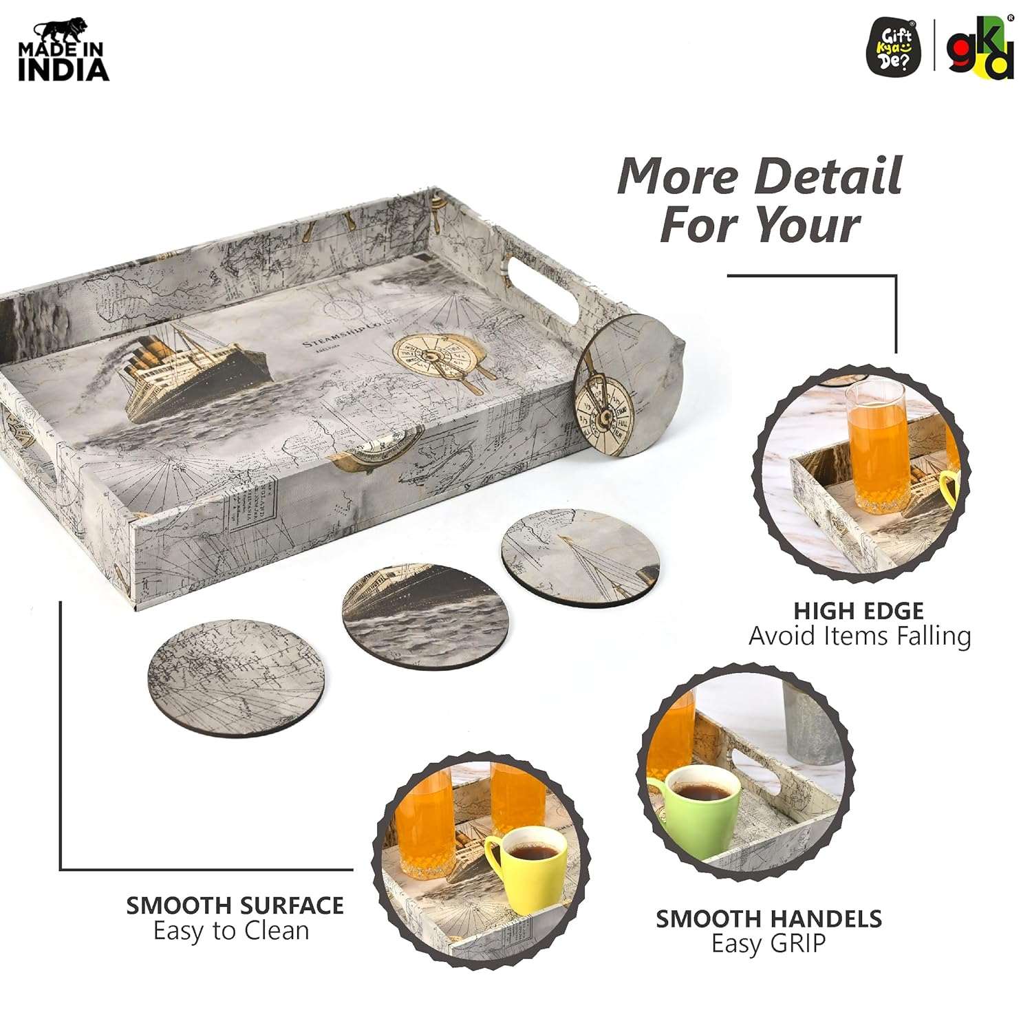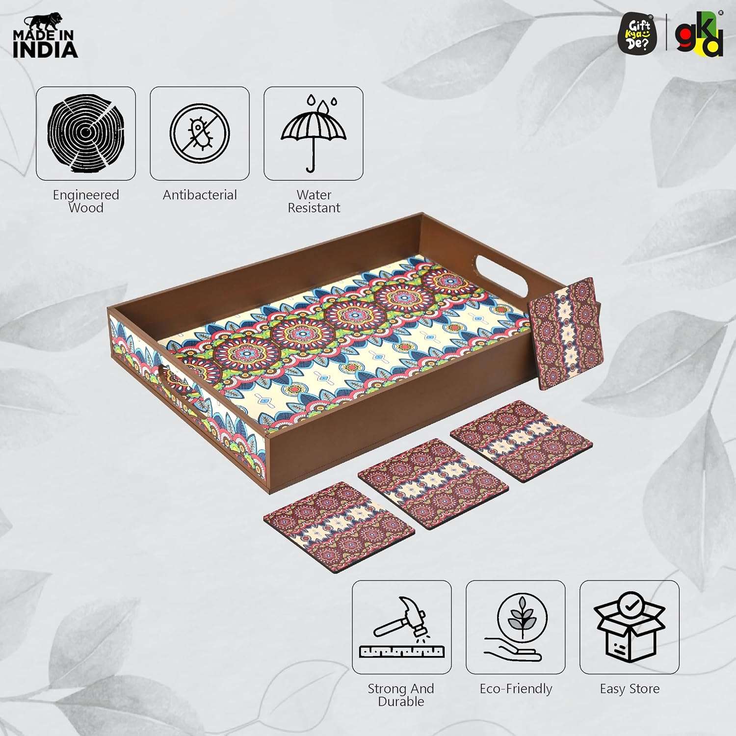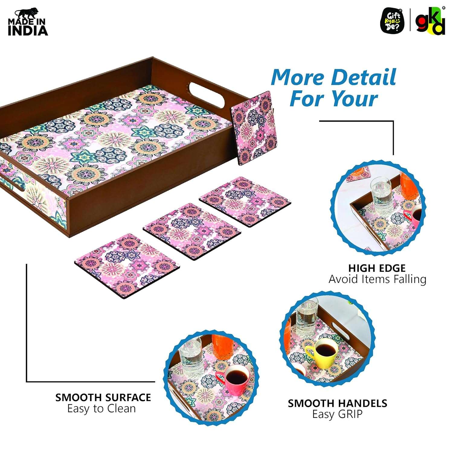 Elevate your home with the Gift Kya De Wooden Serving Tray, designed for both style and practicality. Available in 5 stunning designs, you can choose from:
