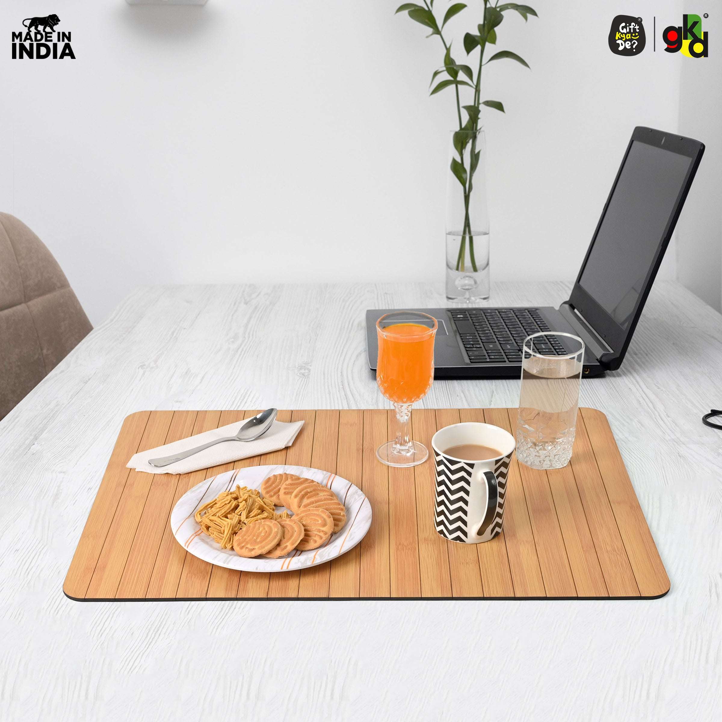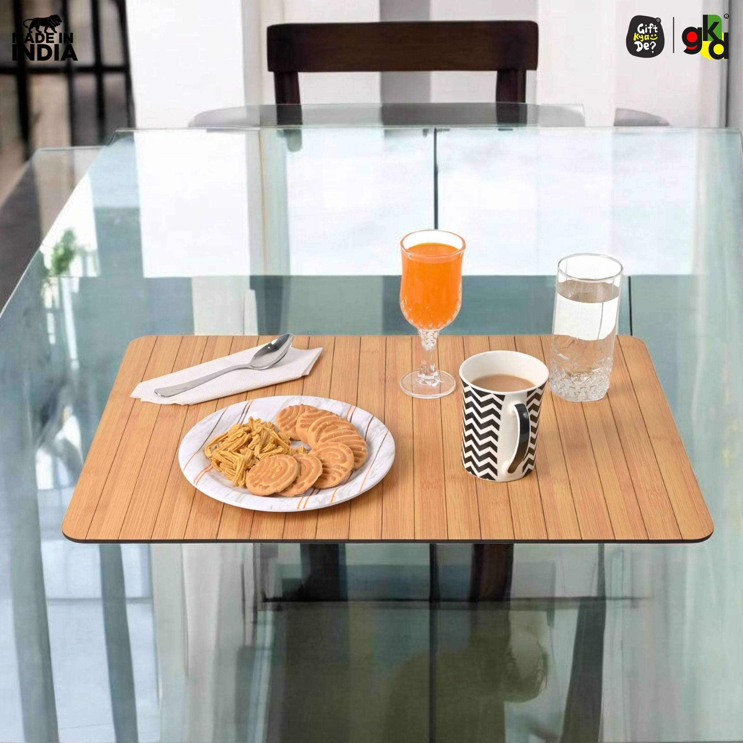 Turn your couch or recliner into a stylish serving space with the Gift Kya De® Sofa Armrest Tray, designed for comfort, function, and elegance. Handcrafted in India using eco-friendly MDF wood, this foldable tray features a beautiful bamboo finish and is available in two convenient sizes to suit different sofa types. Whether you're enjoying a quiet coffee, hosting friends, or working from home, this tray offers a stable, water-resistant surface for your everyday needs. Lightweight, rollable, and easy to clean — it’s the perfect living room essential.