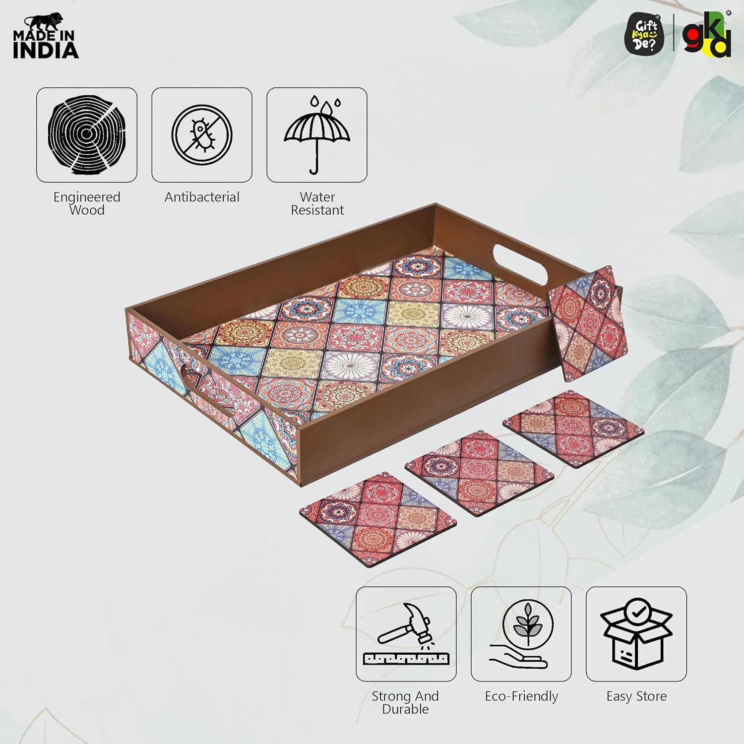 Elevate your home with the Gift Kya De Wooden Serving Tray, designed for both style and practicality. Available in 5 stunning designs, you can choose from: