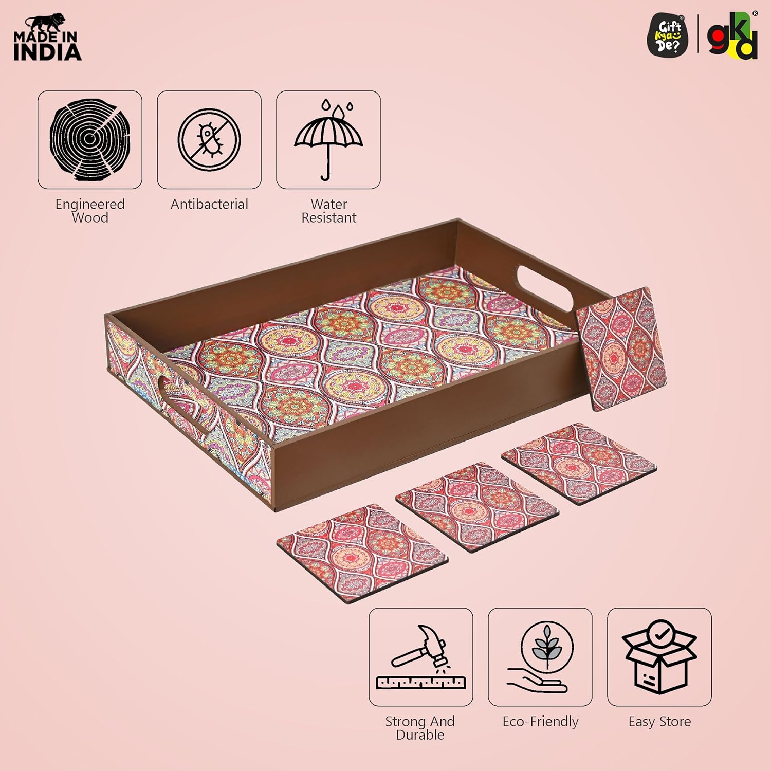Each tray comes with 4 matching coasters, completing your serving set. Whether you're hosting a party, enjoying breakfast in bed, or decorating your space, this versatile tray is a must-have.