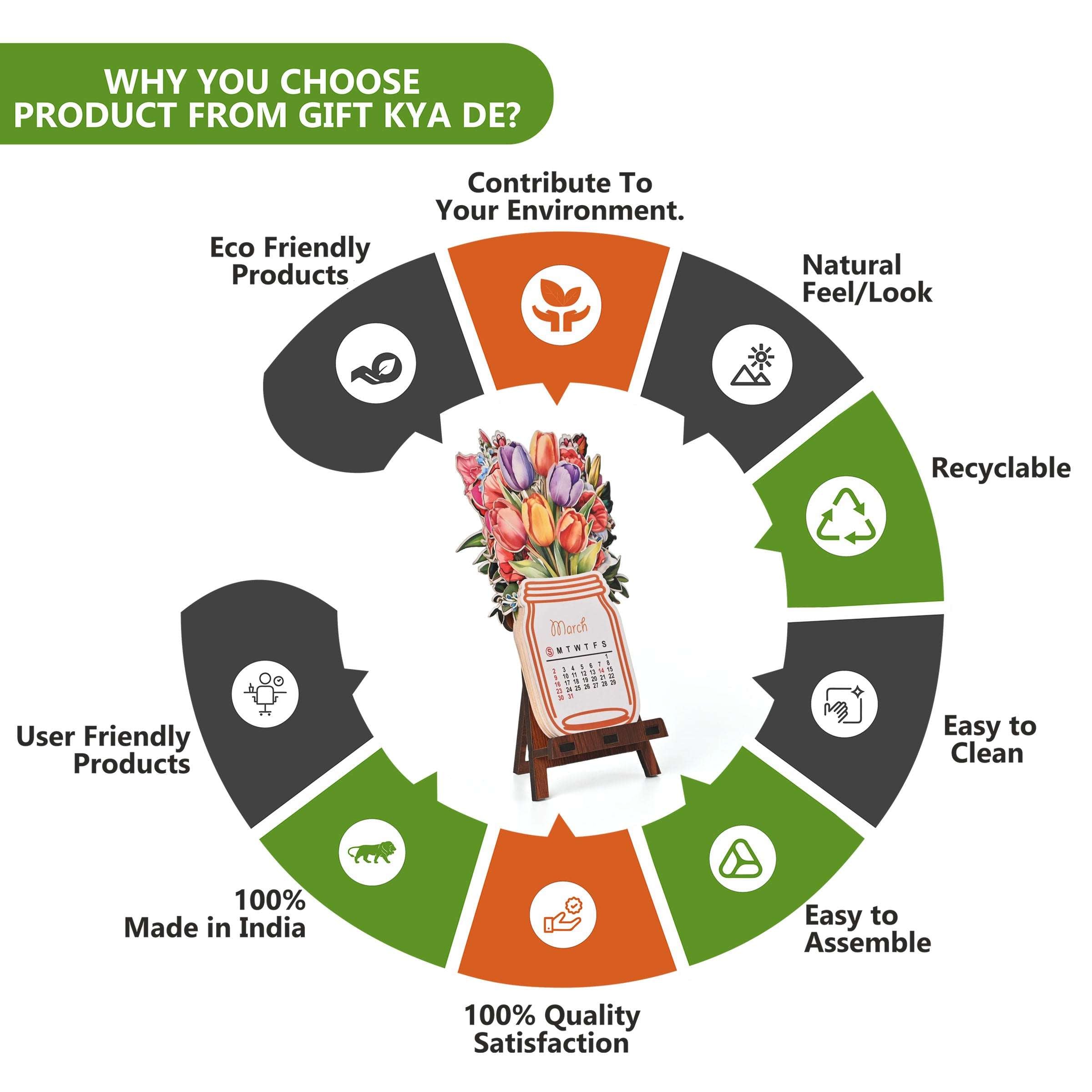 ✅ Eco-Friendly & Reusable Stand – The wooden stand can be reused for future calendars, notes, or even as a mobile holder, making it a sustainable gifting choice.