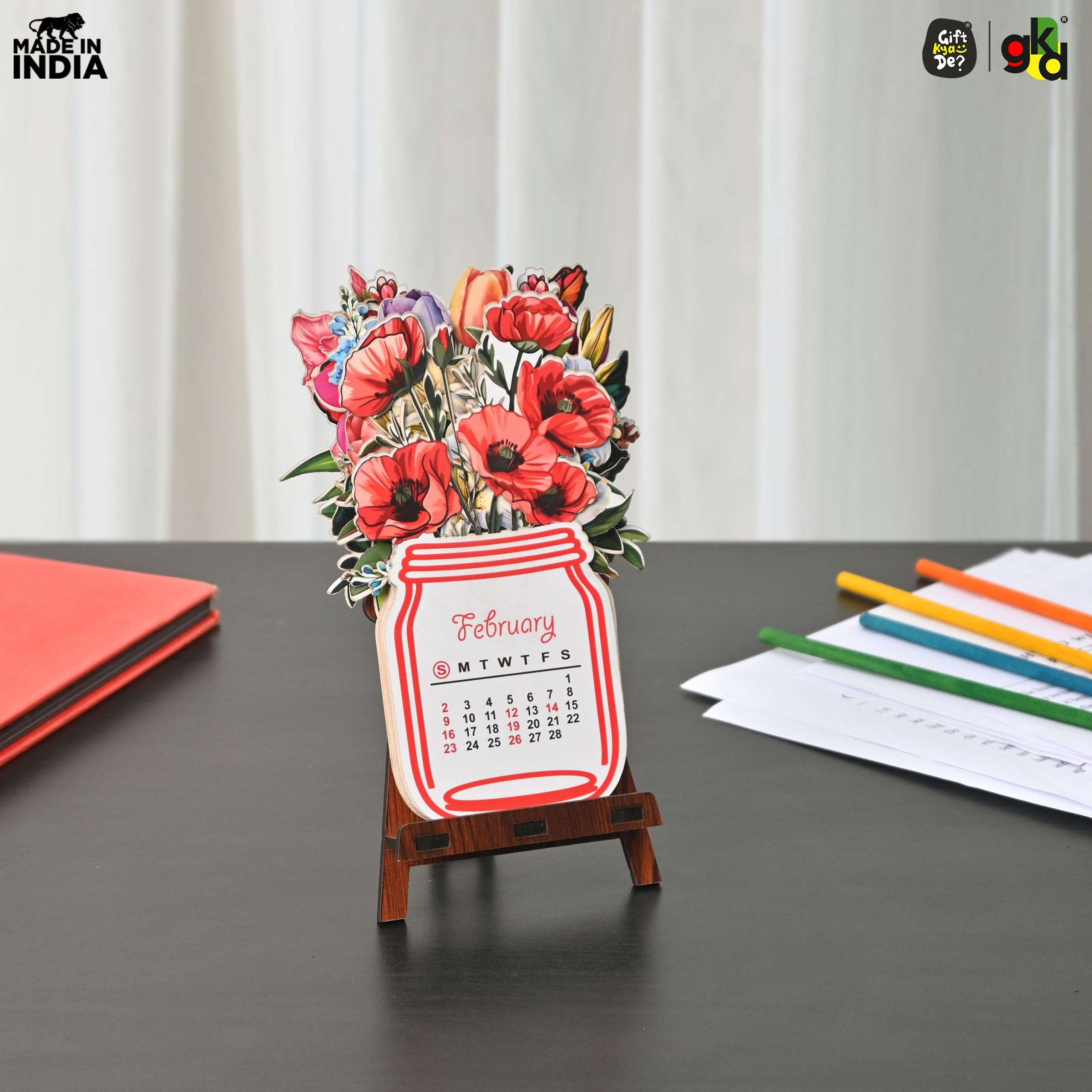 Floral Desk Calendar 2025 | Paper Calendar with Wooden Stand | Perfect for Home & Workspaces