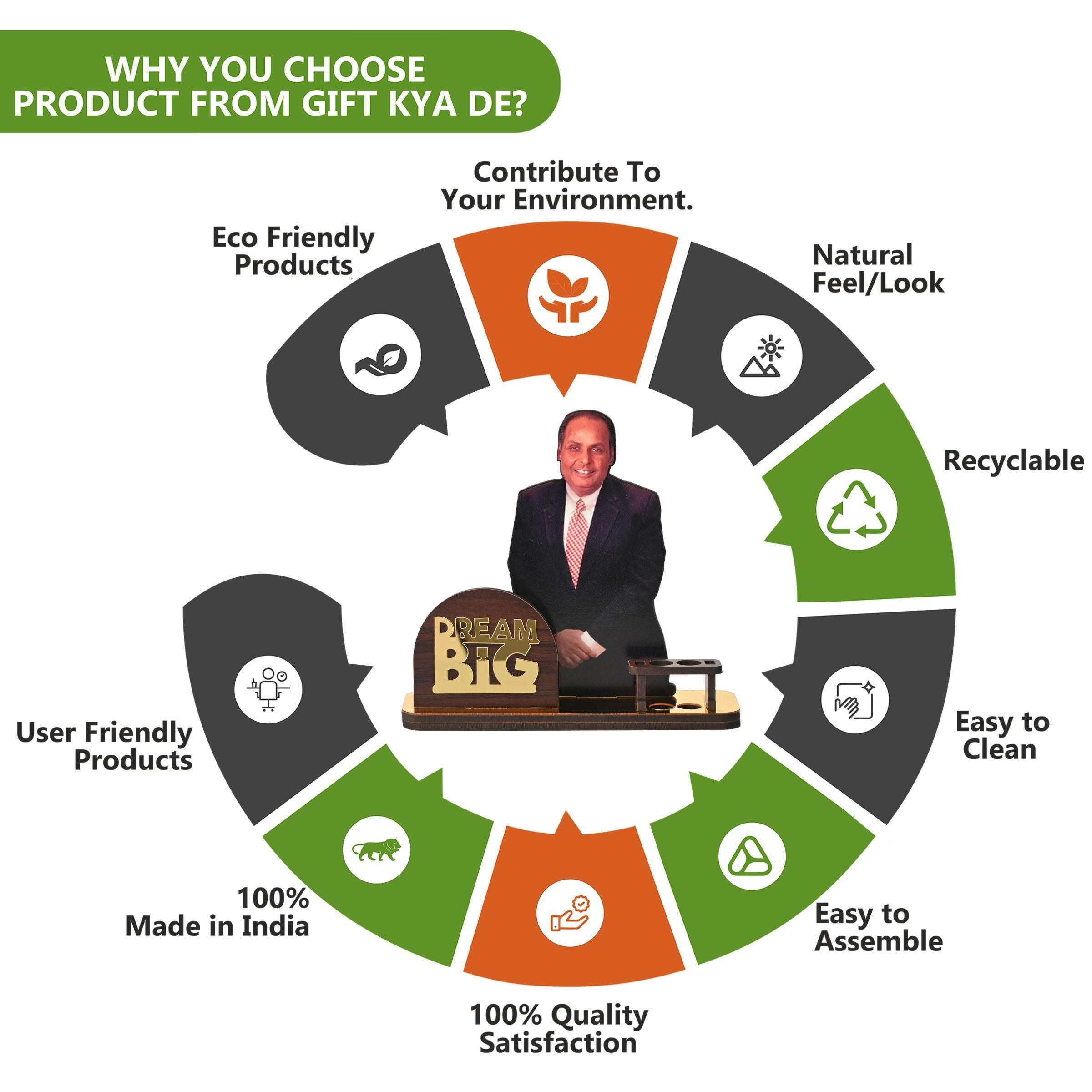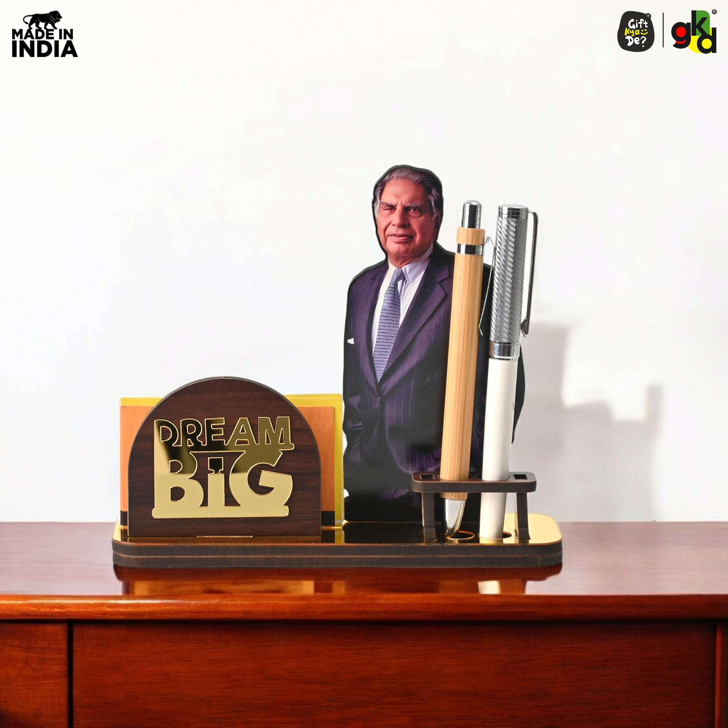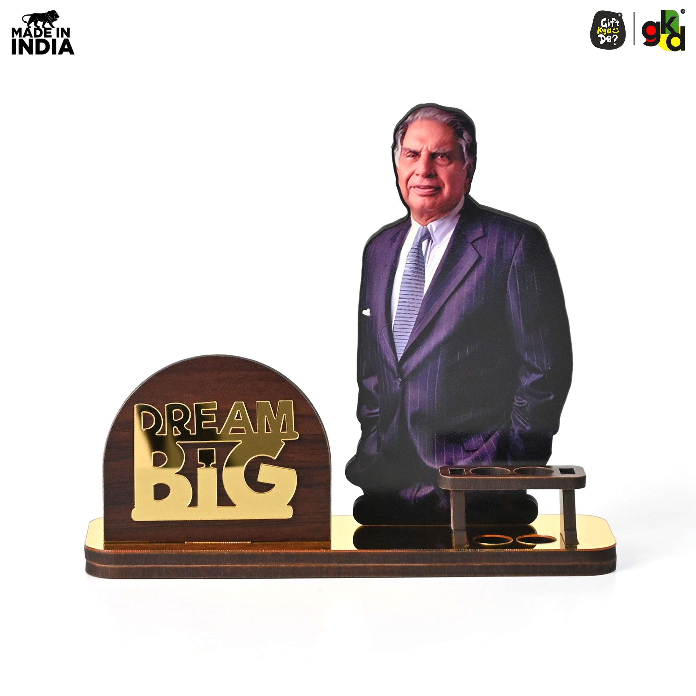 Celebrate the legacy of India’s legendary leaders with this “Dream Big” Wooden Table Top, featuring two inspiring variants – Ratan Tata and Dhirubhai Ambani. More than just a decorative piece, it’s a motivational desk companion designed with a built-in pen holder and visiting card slot to combine utility with inspiration.