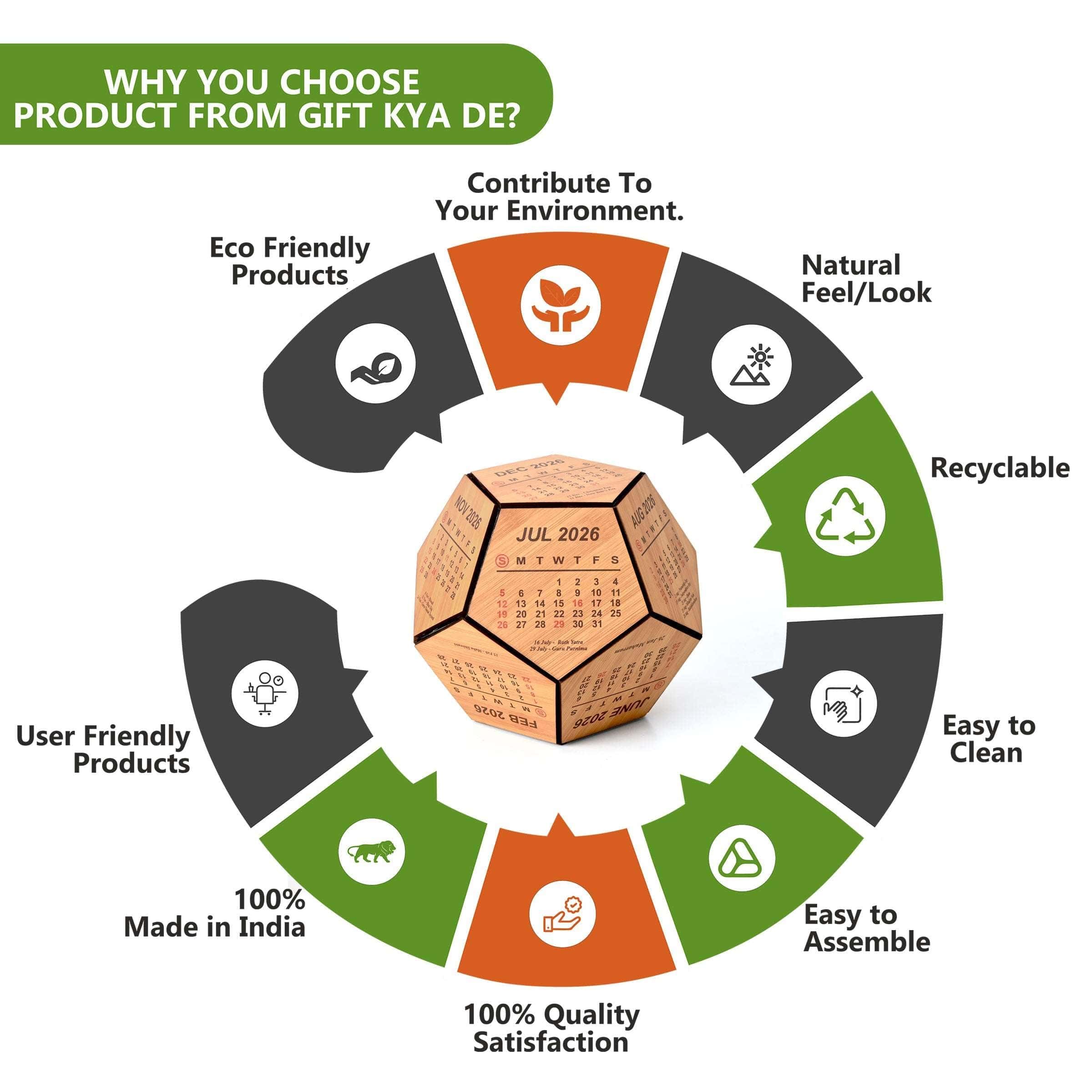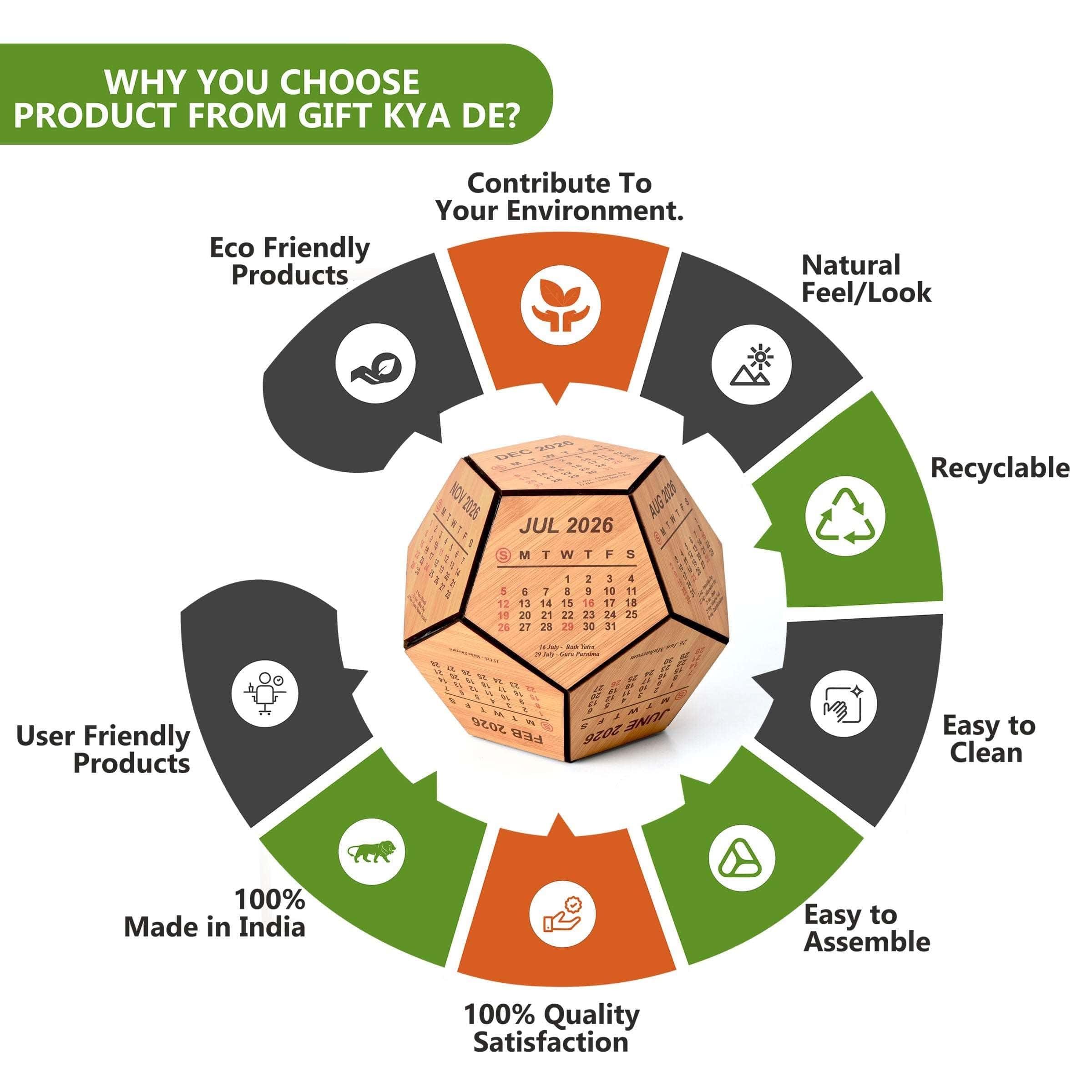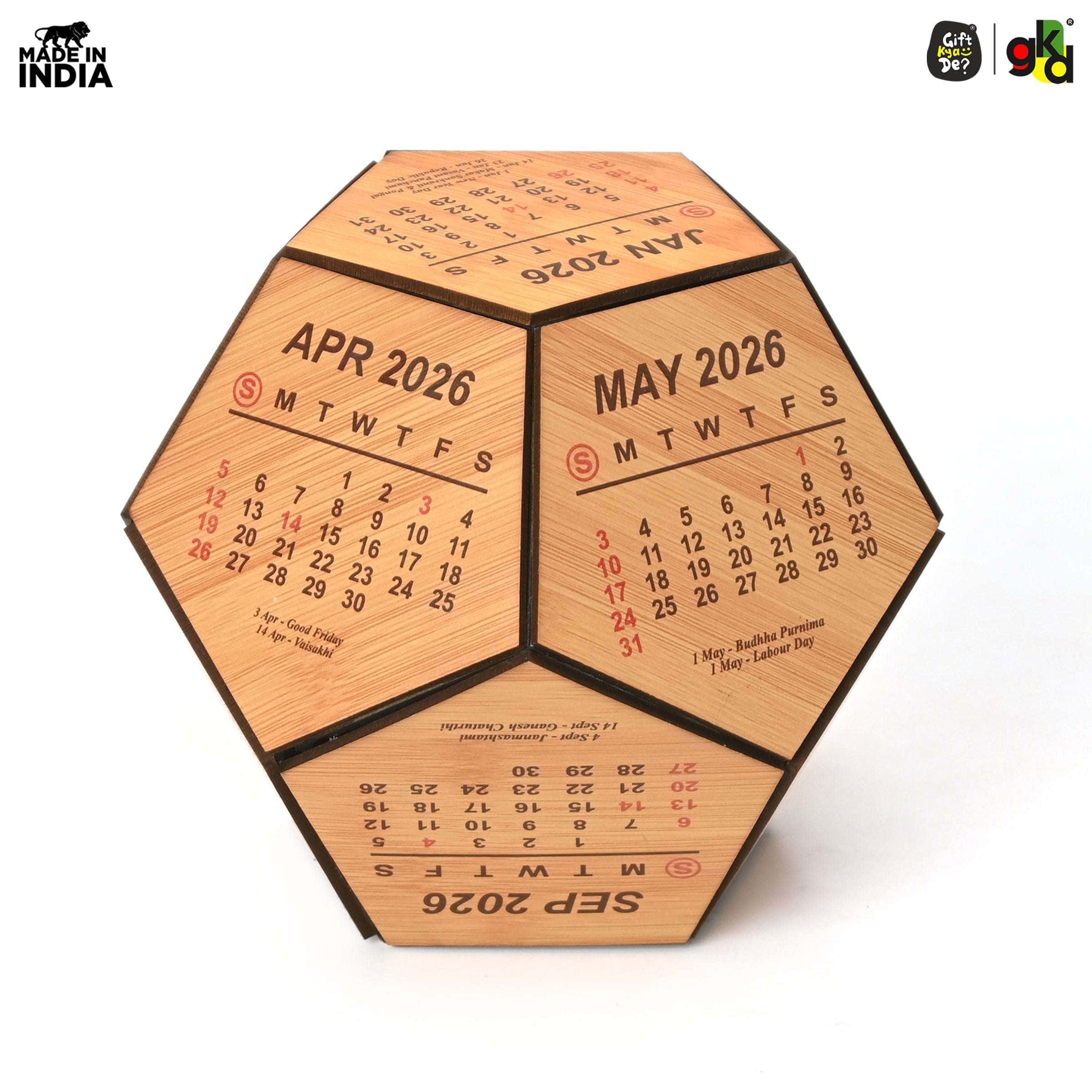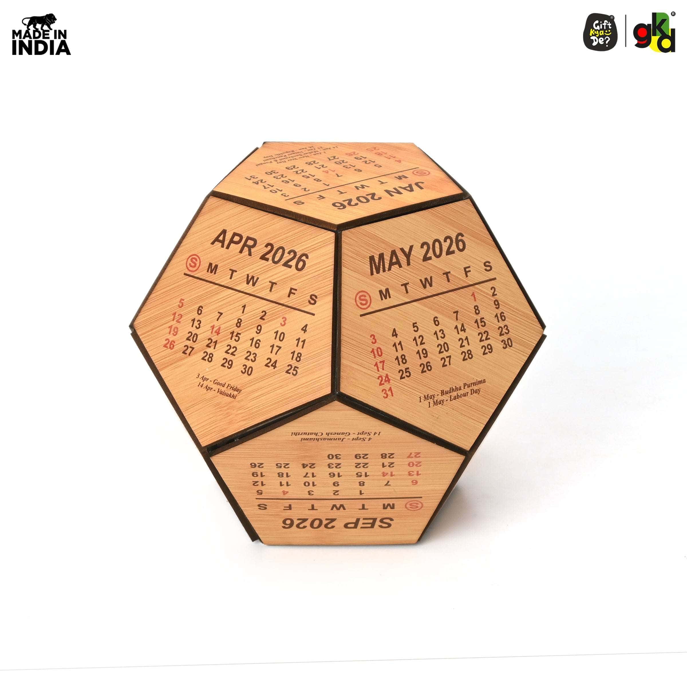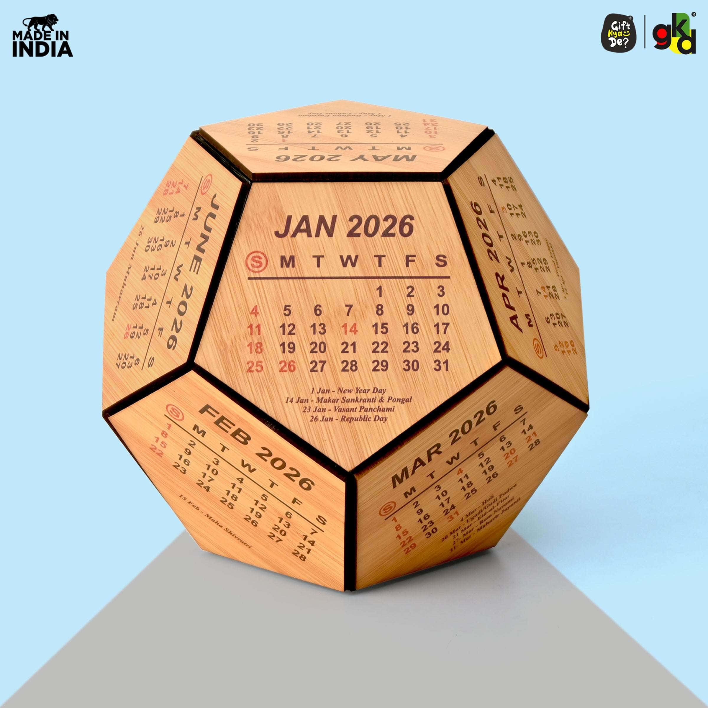 Wooden 3D Pentagon Calendar is perfectly crafted for your desk. You can place this custom desk calendar on your study desk, office desk which gives an elegant look to your surroundings.