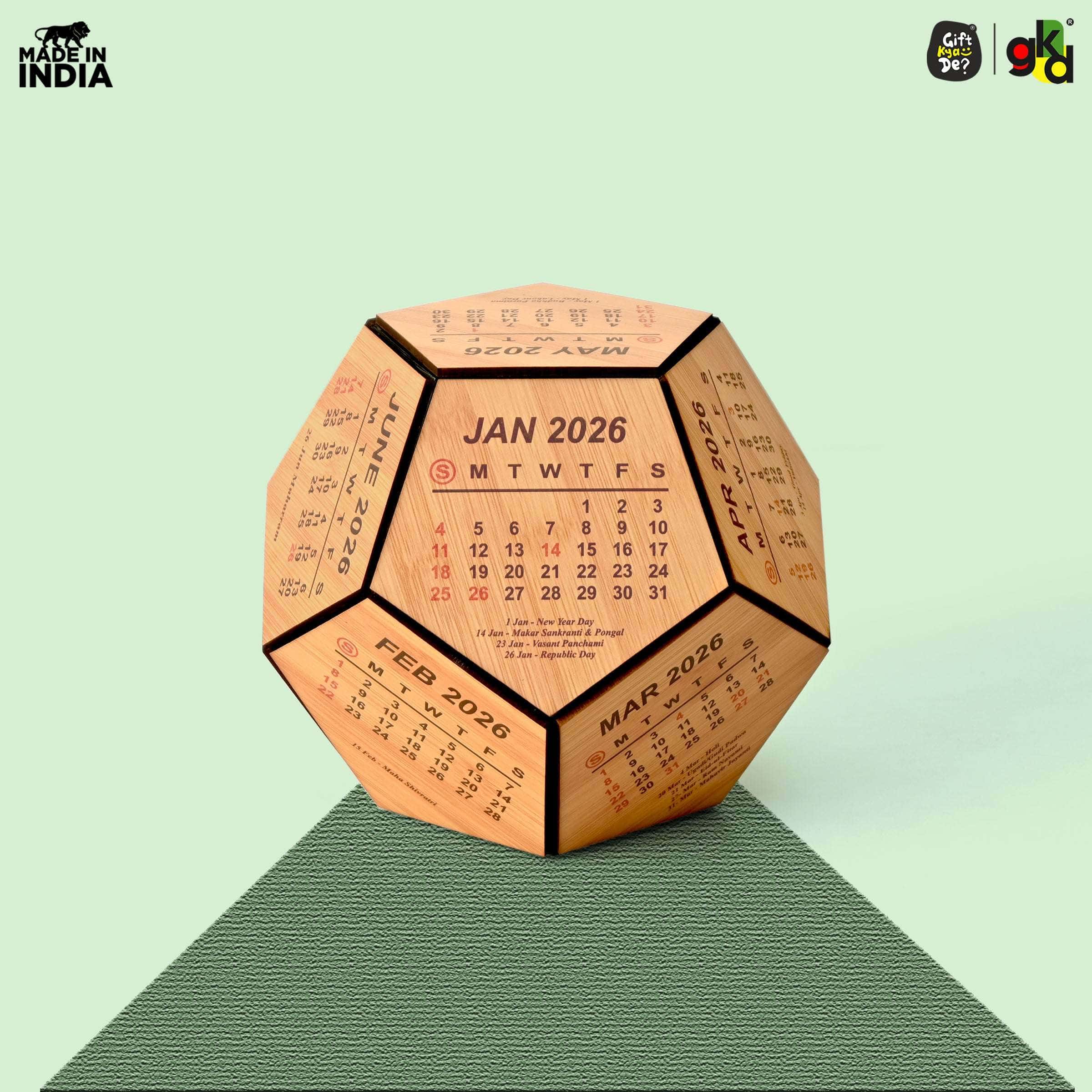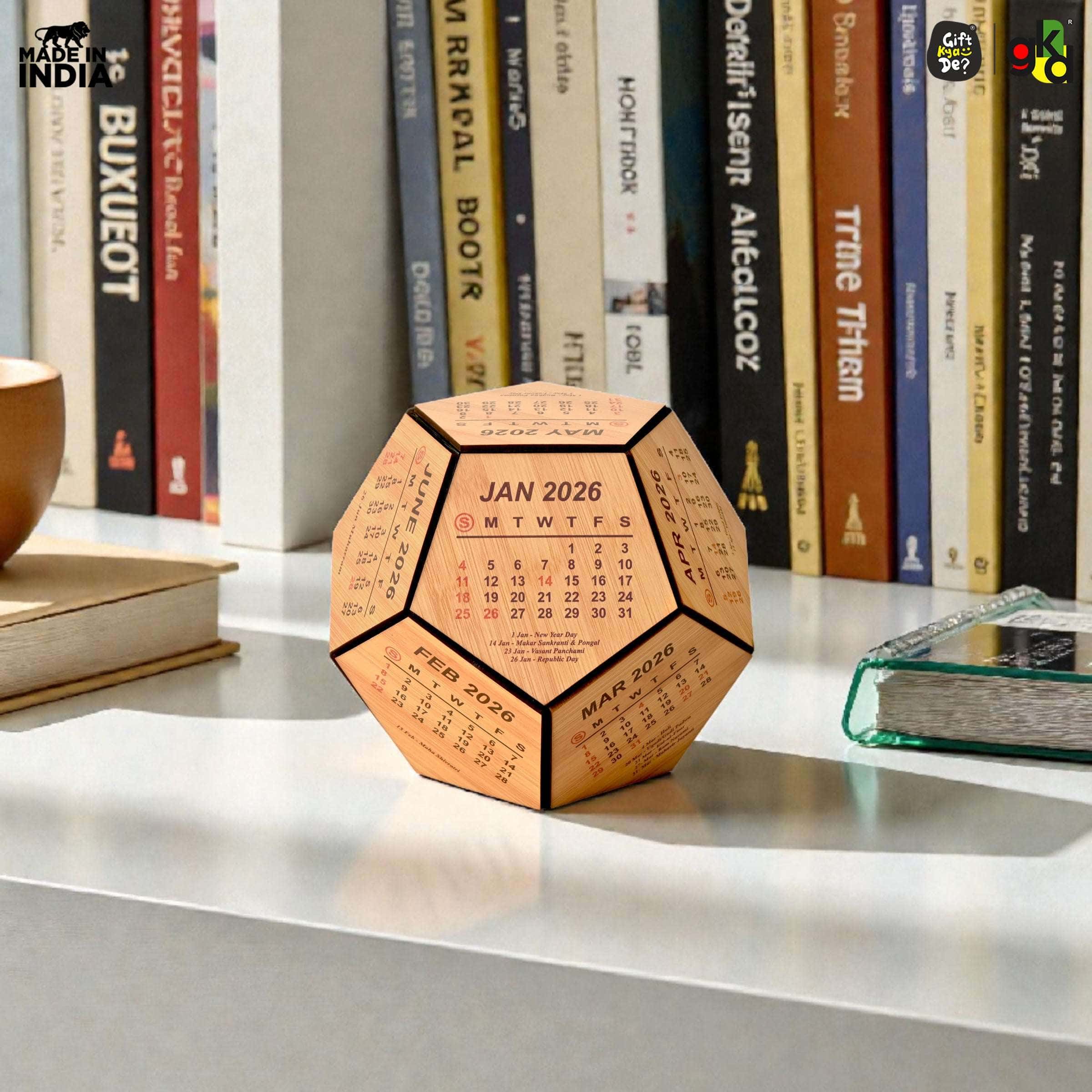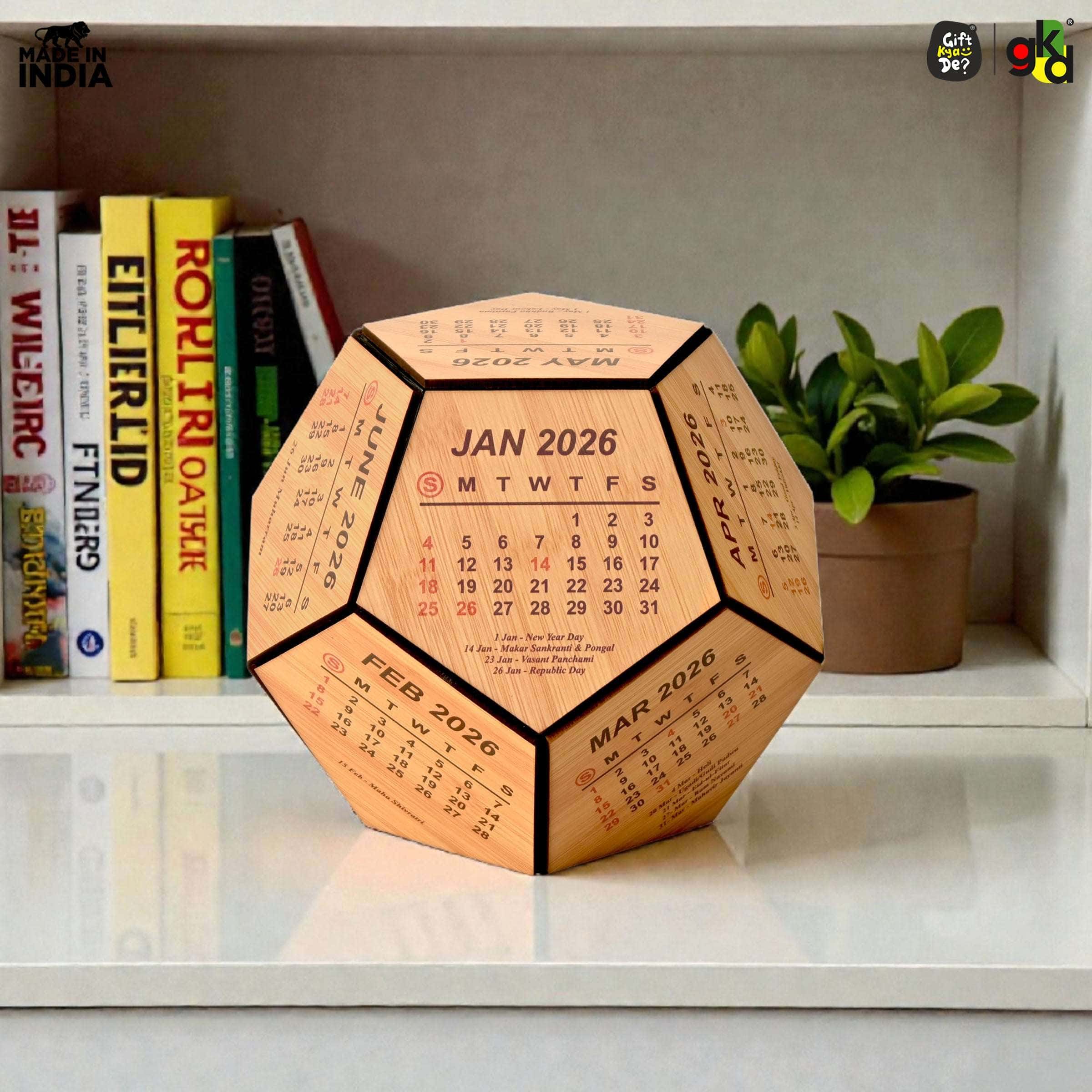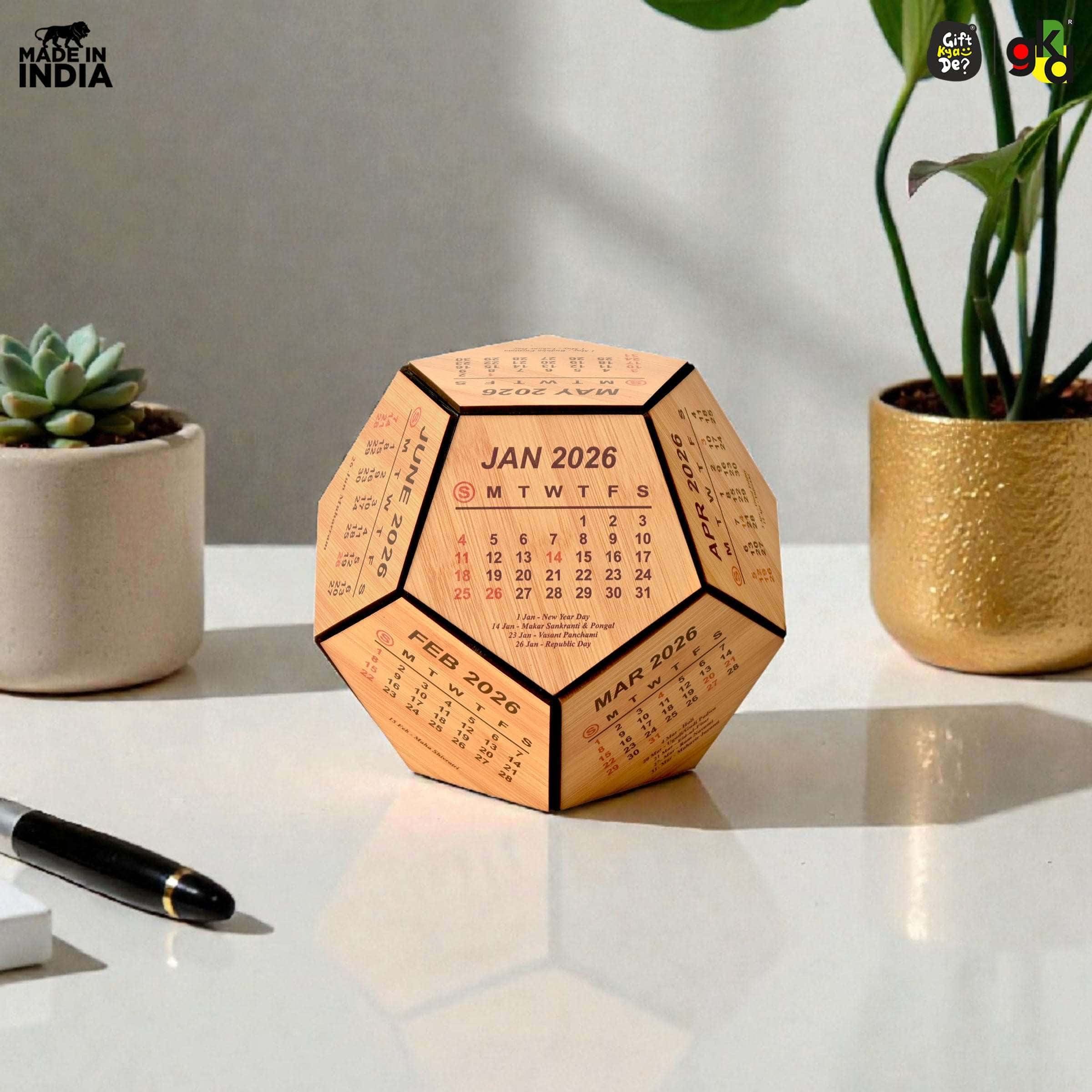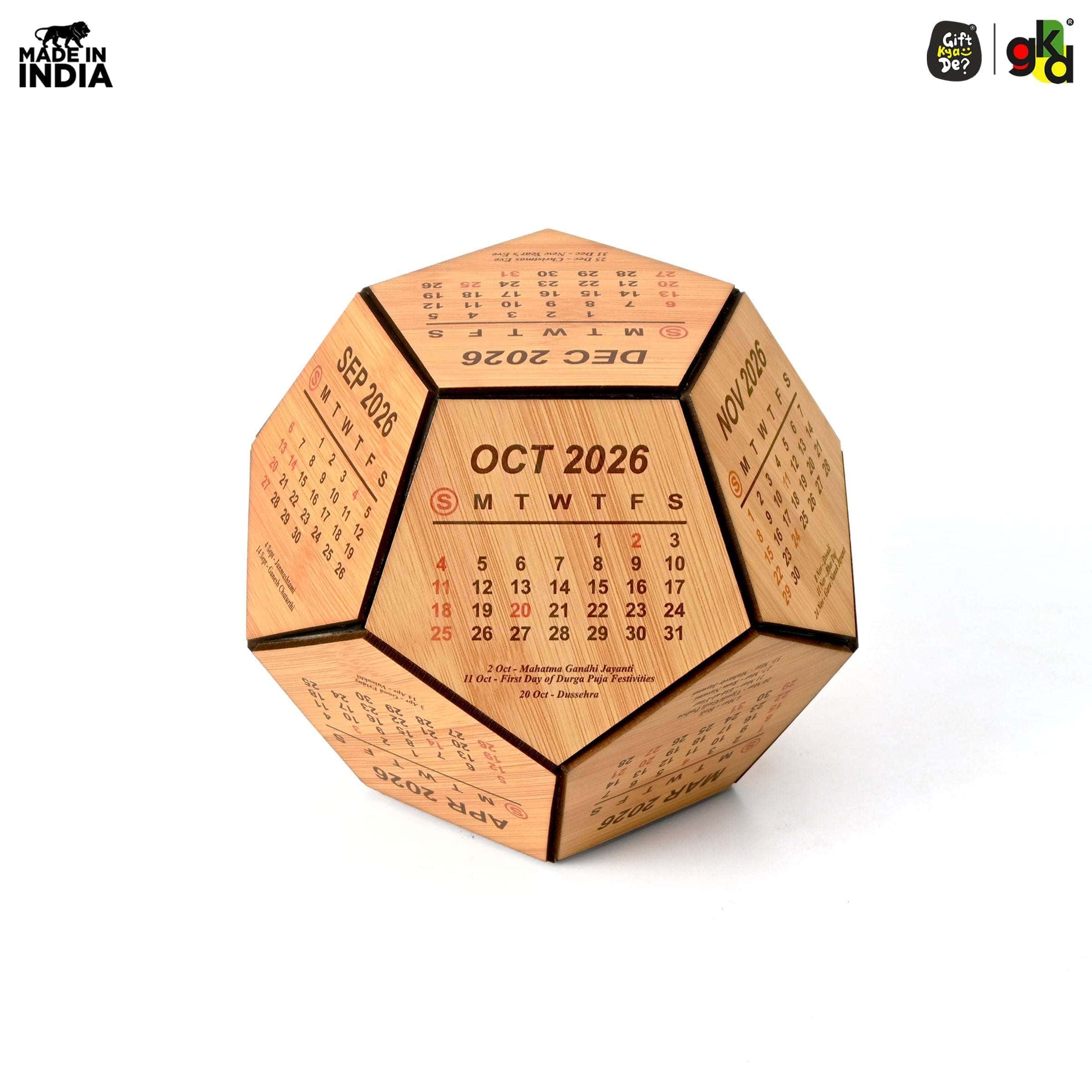 Gift Kya De 6 & 8 Inch Wooden 3D Premium Pentagonal Shape 2025 Calendar for Desk / Home Décor / Office Décor / Gift Item / Decorative New Year Calendar / Corporate Gift.