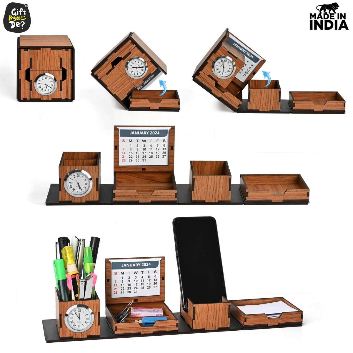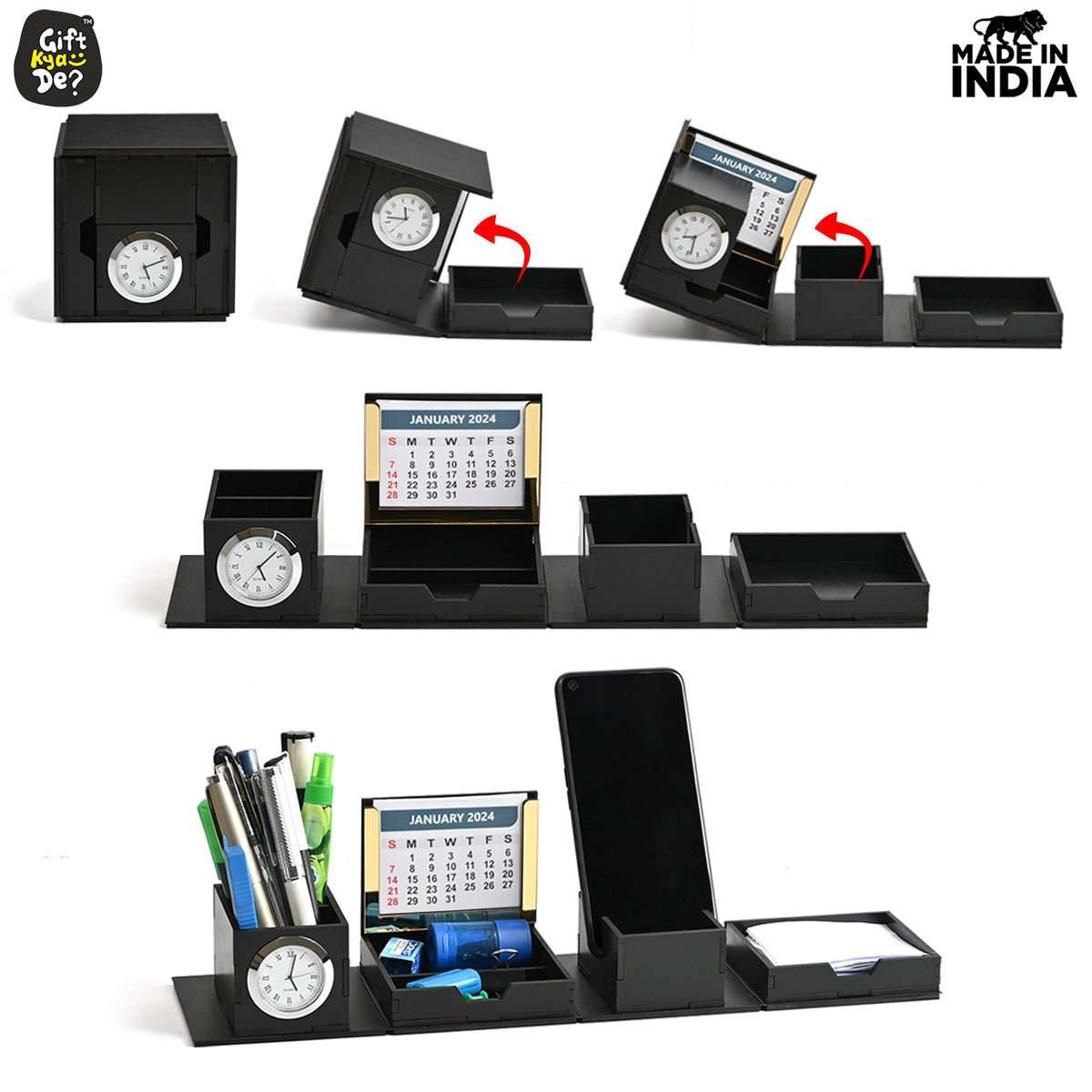 Foldable All in One Office Desk Organizer With Clock, Calendar 2026 & Mobile Stand | Desk Accessories
