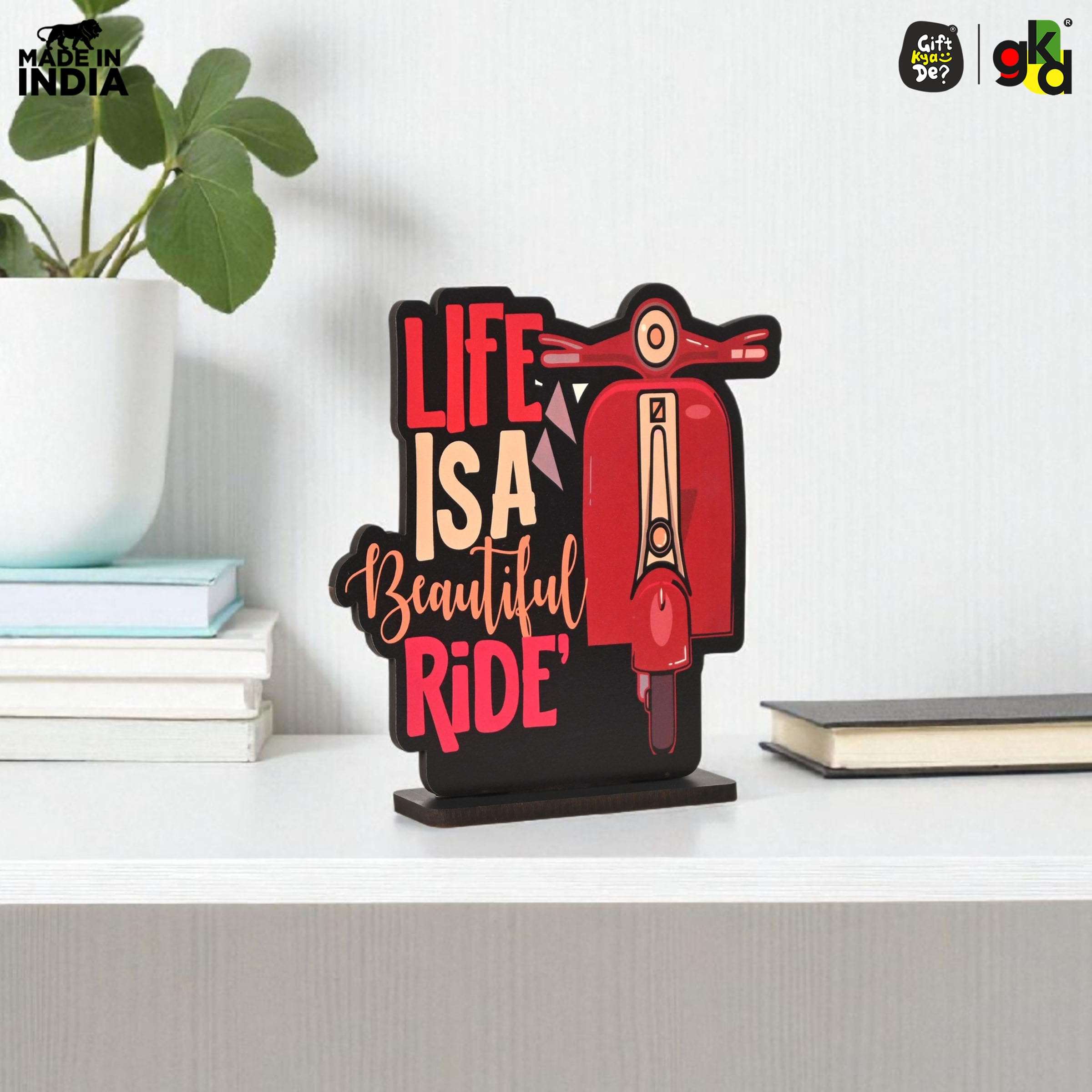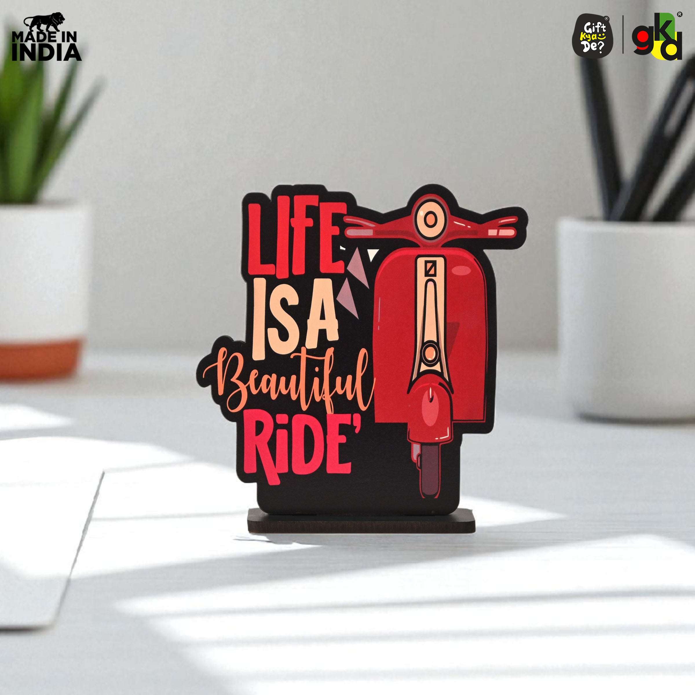 - Motivational Quote Table Top – Features the inspiring quote “Life is a Beautiful Ride” with a vibrant scooter design, adding positivity and style to your desk.