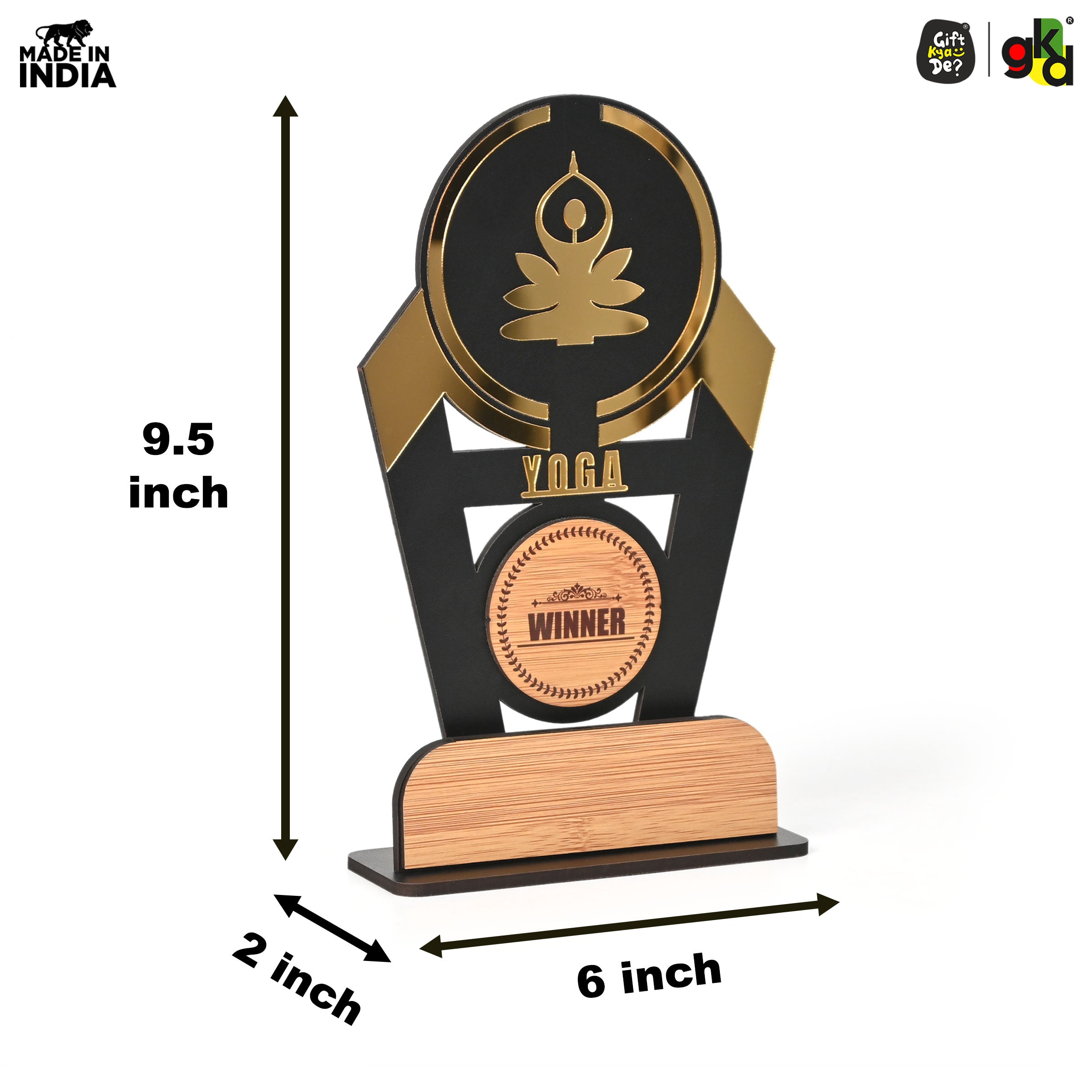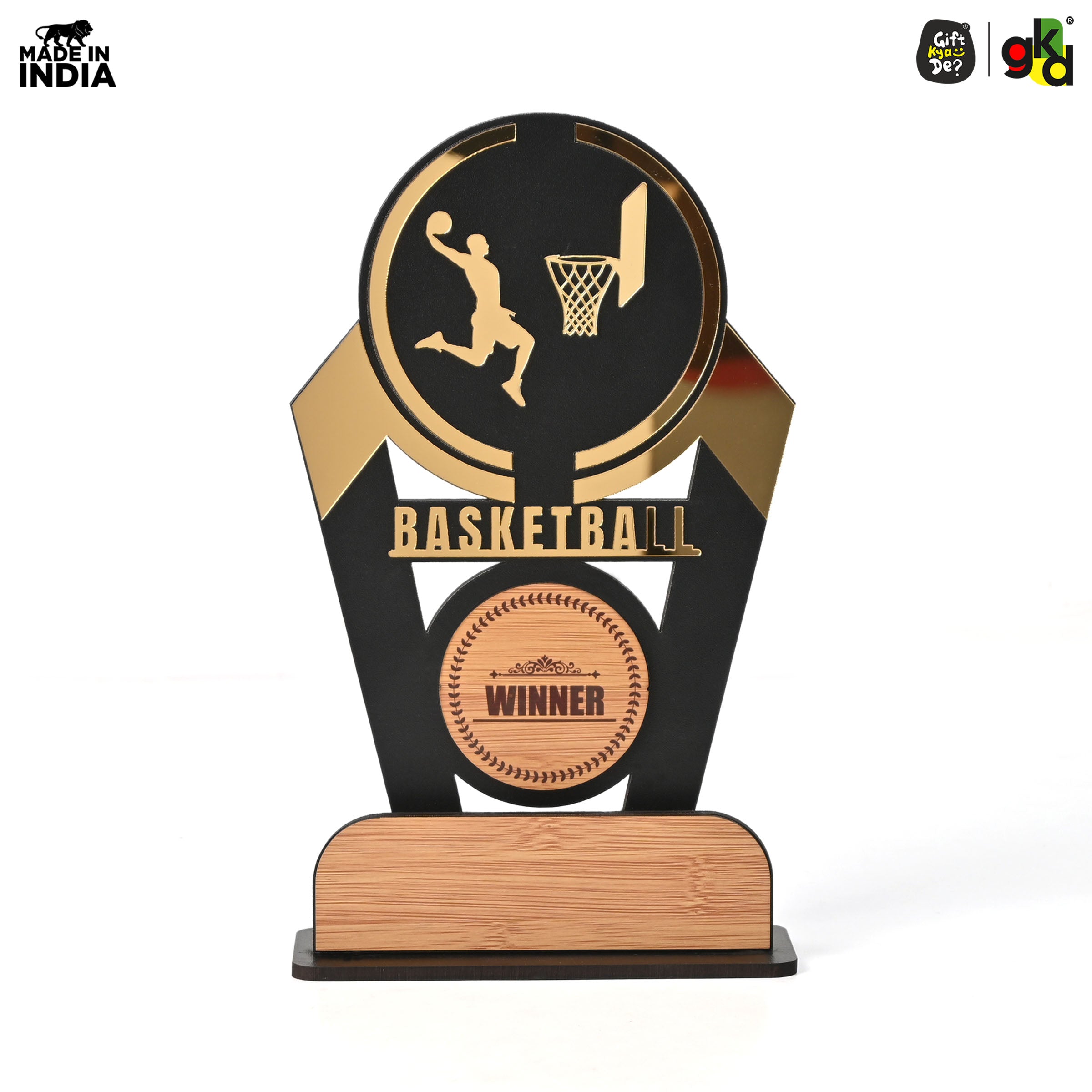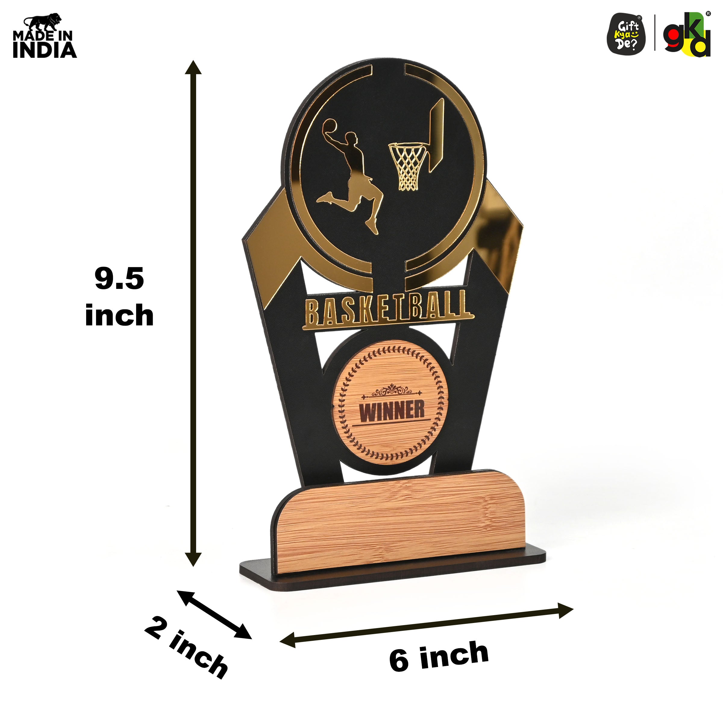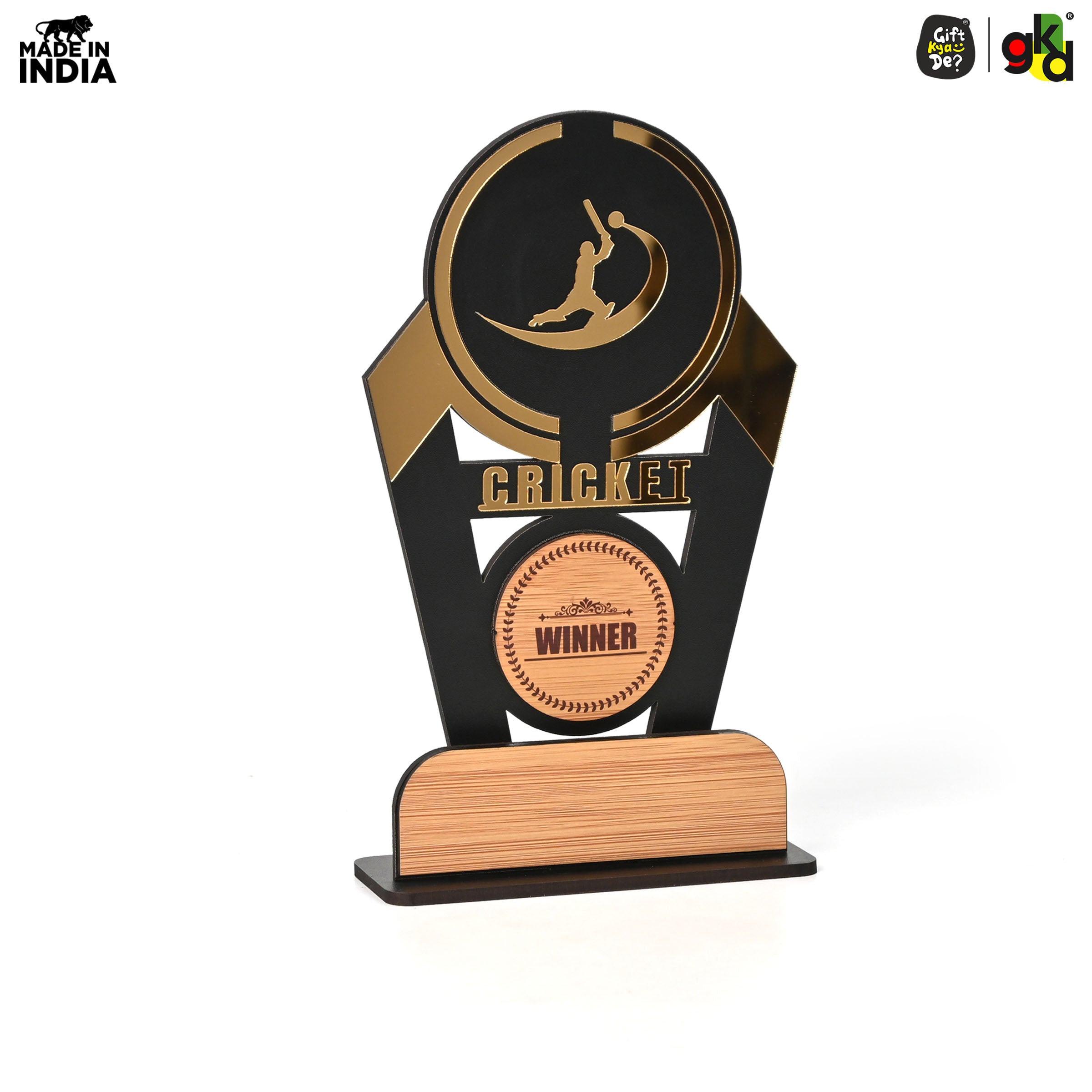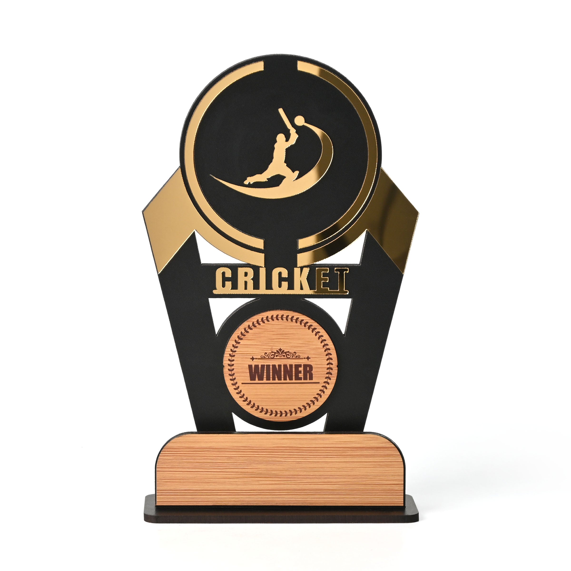 Wooden Sports Winner Trophy - Cricket, Football, Table Tennis, Yoga, Basketball | 9.5 x 6 Inches | School, College & Corporate Events