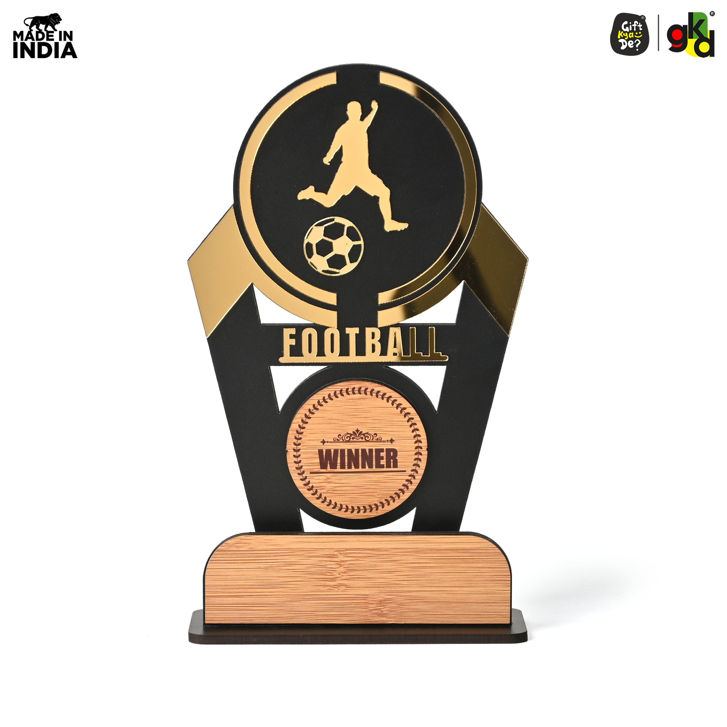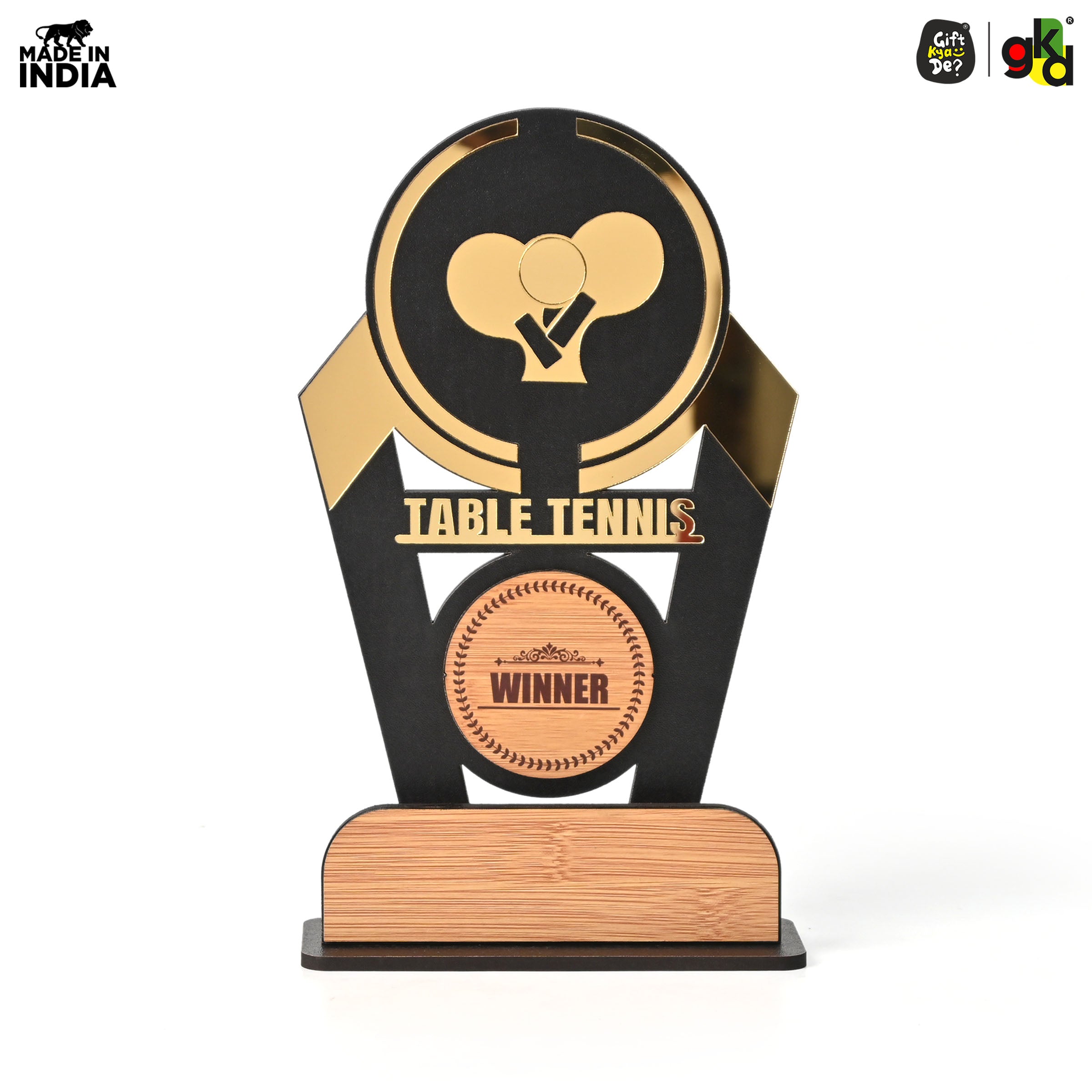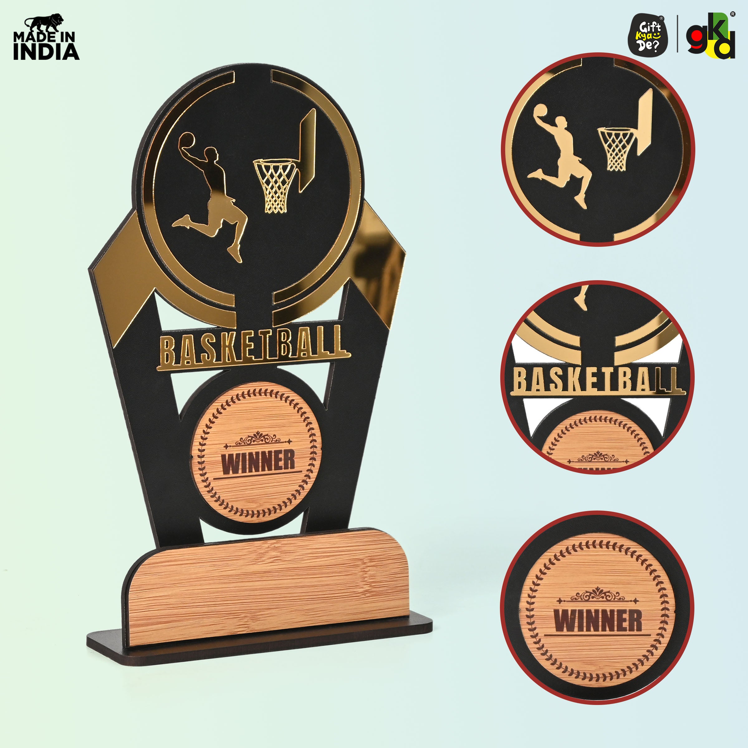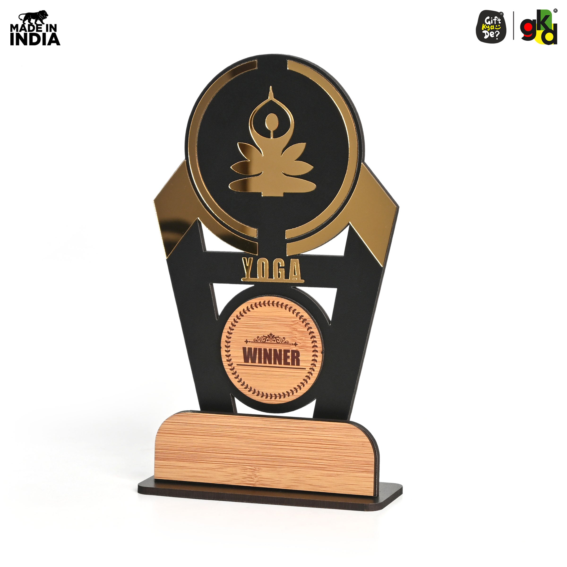 Wooden Sports Winner Trophy - Cricket, Football, Table Tennis, Yoga, Basketball | 9.5 x 6 Inches | School, College & Corporate Events