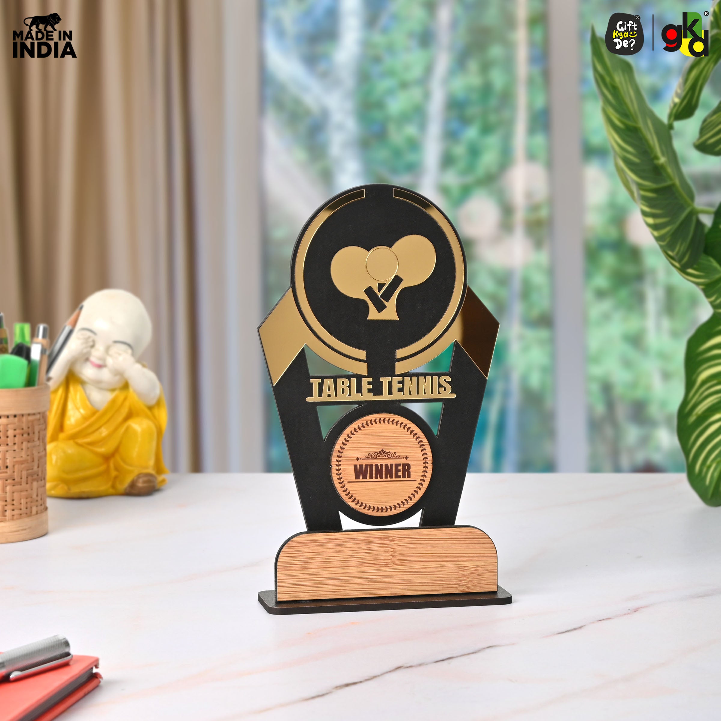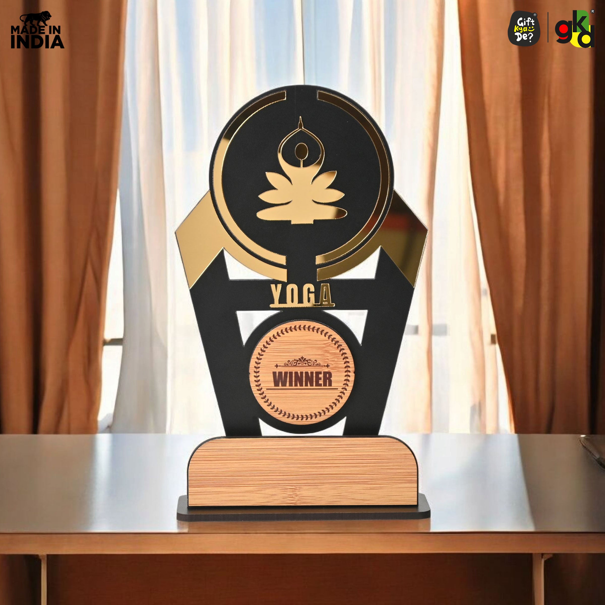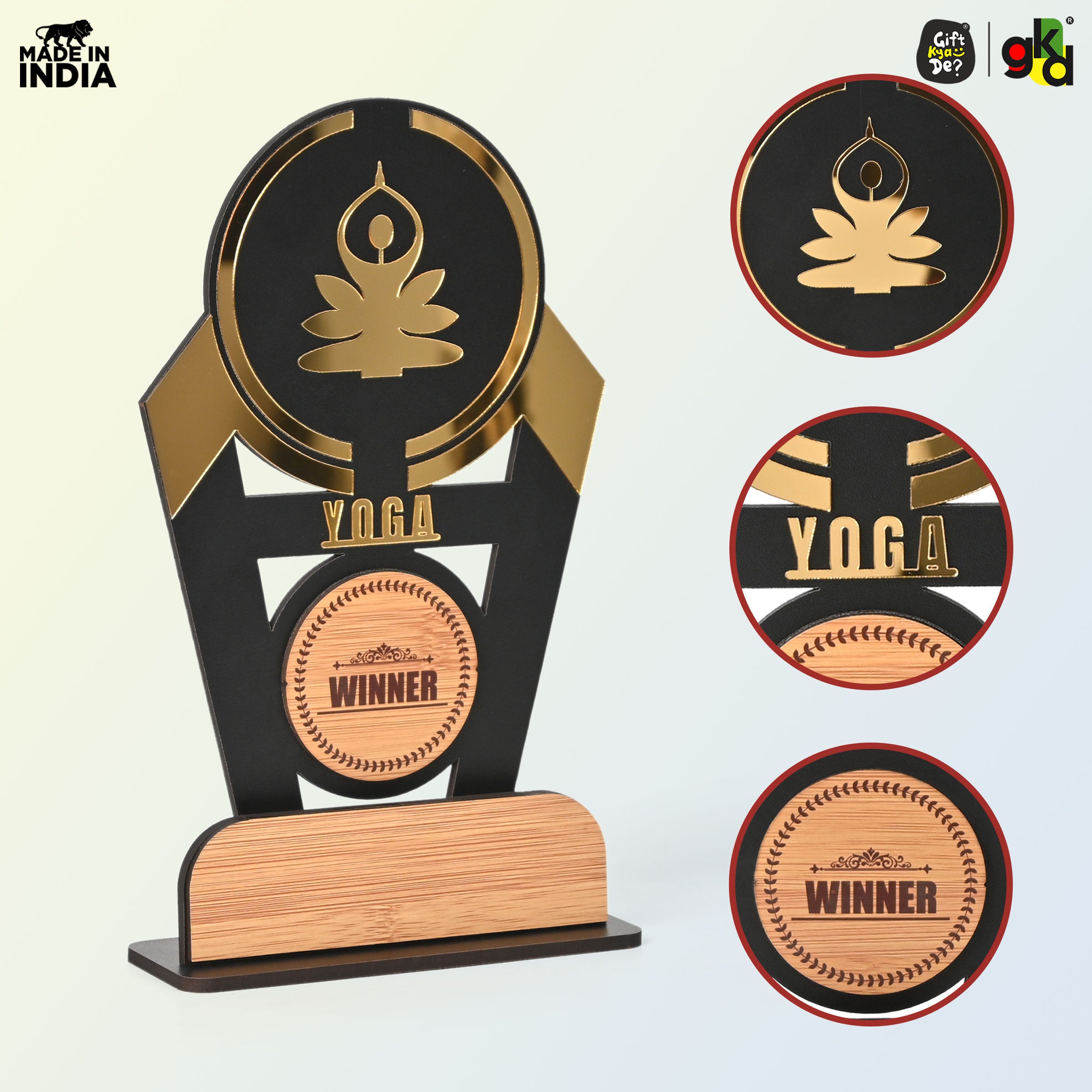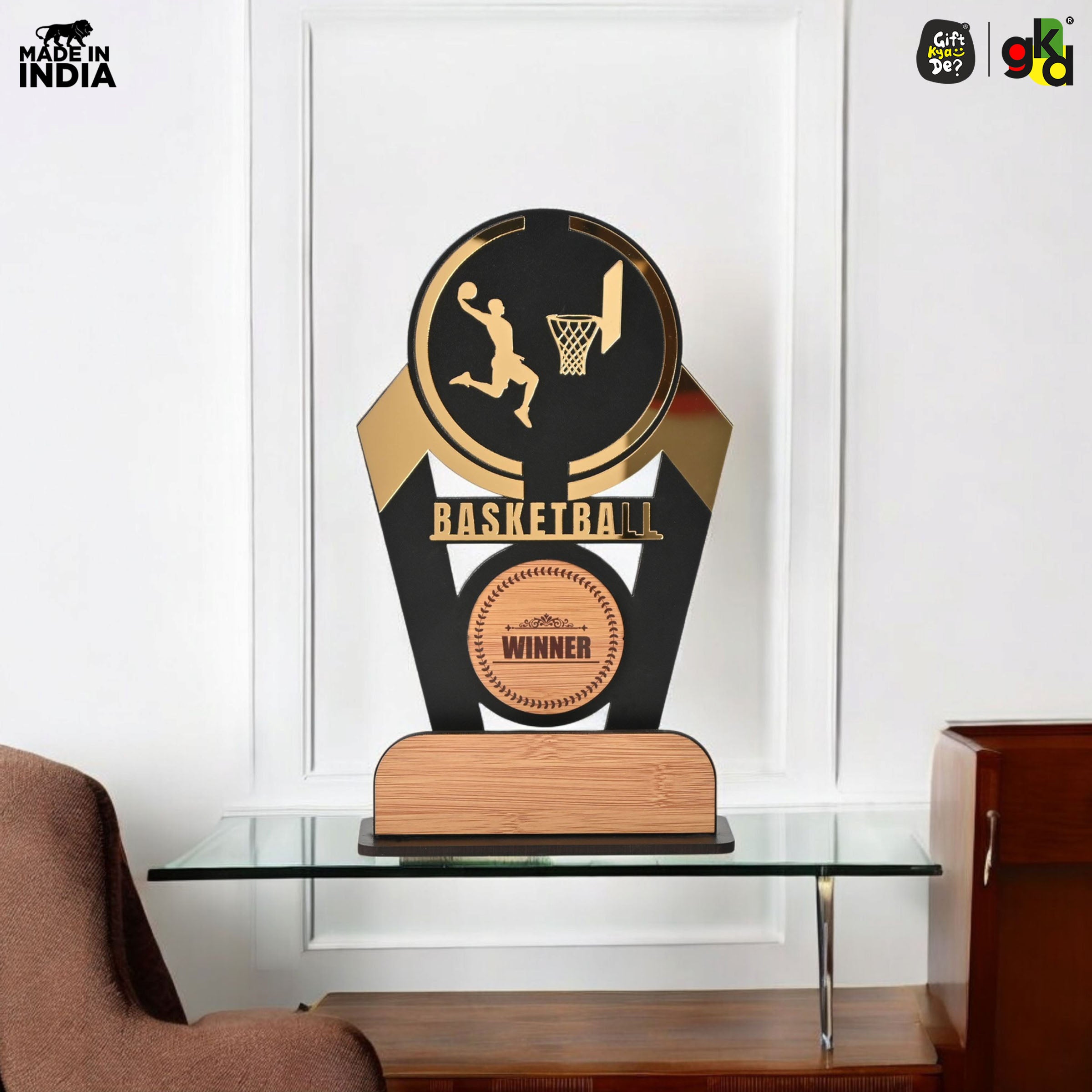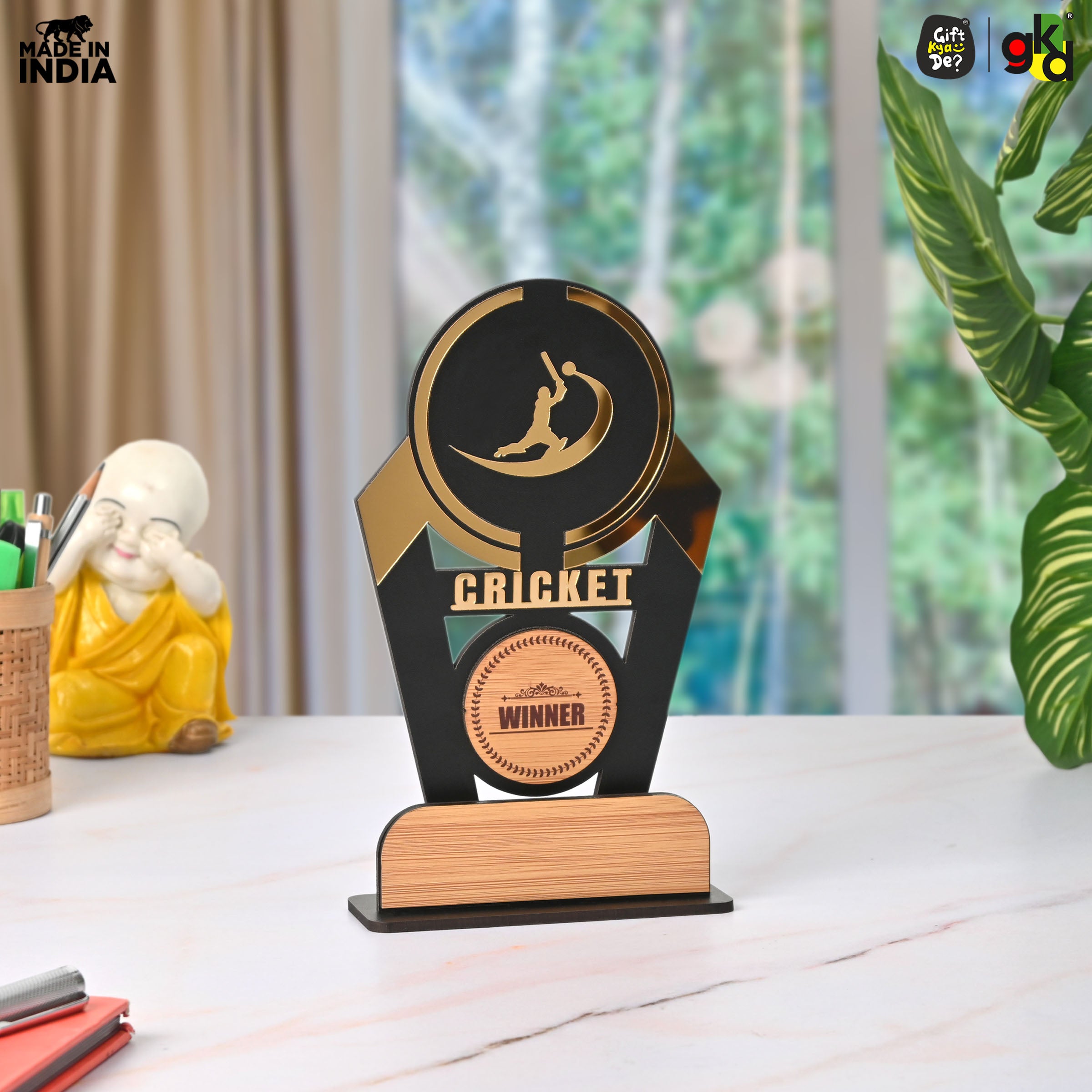 Wooden Sports Winner Trophy - Cricket, Football, Table Tennis, Yoga, Basketball | 9.5 x 6 Inches | School, College & Corporate Events