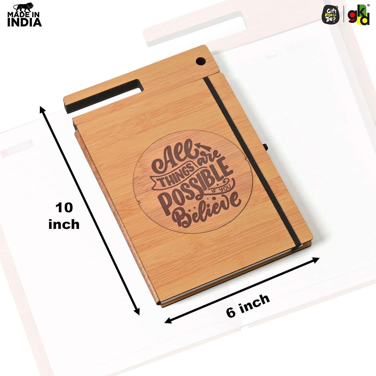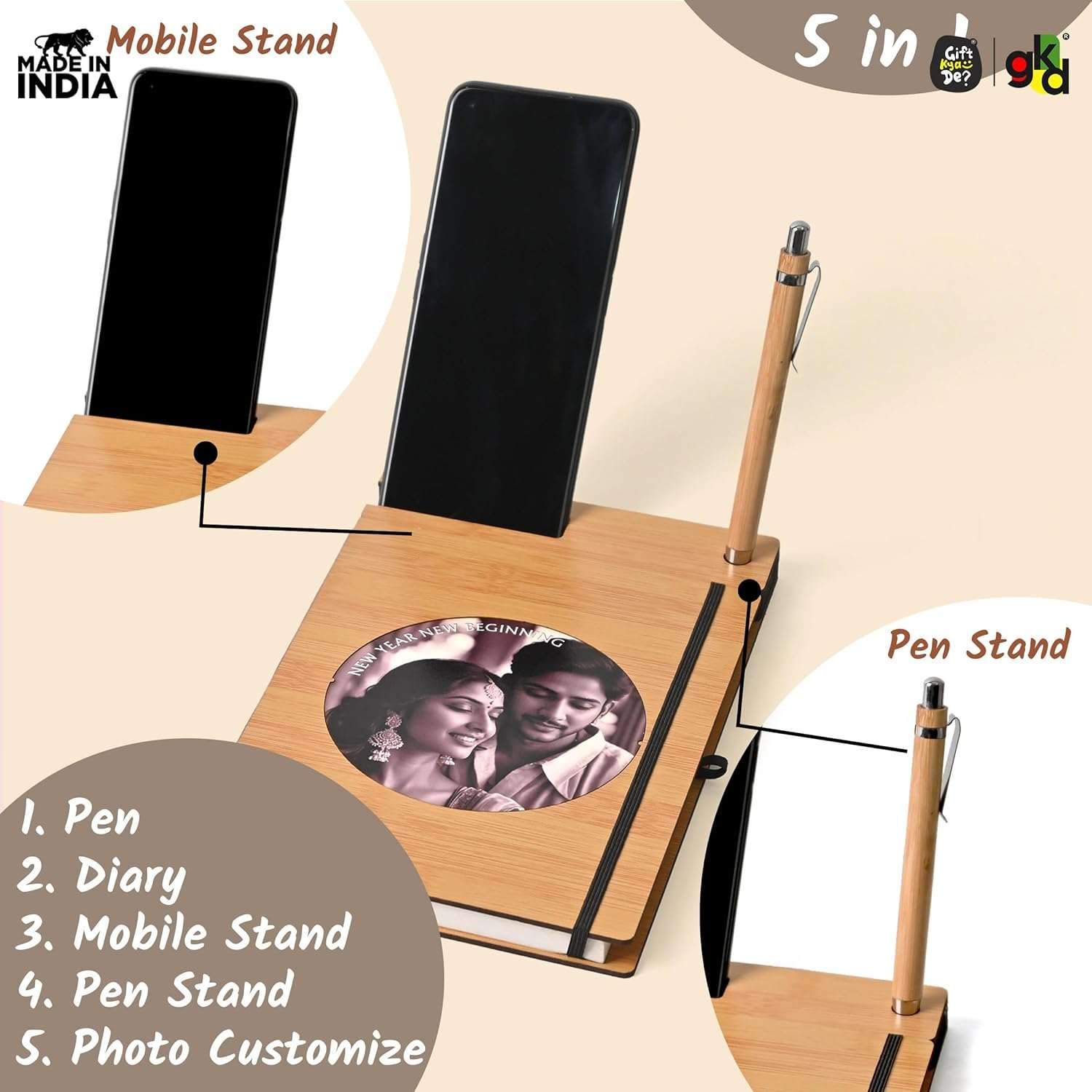Wooden Diary with Mobile & Pen Stand | Customized Printed Photo/Logo or Motivational Quotes (Non-Customizable)