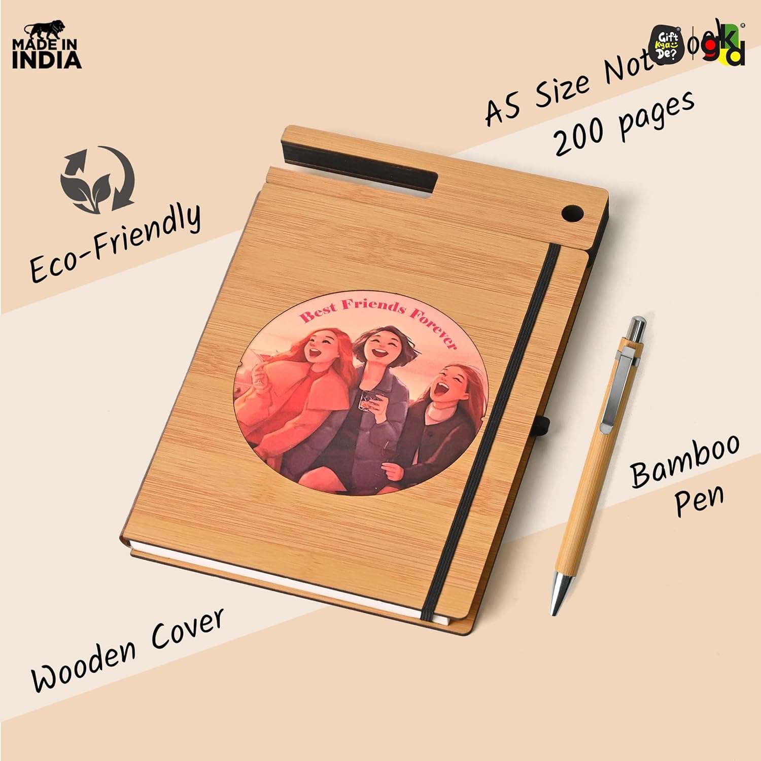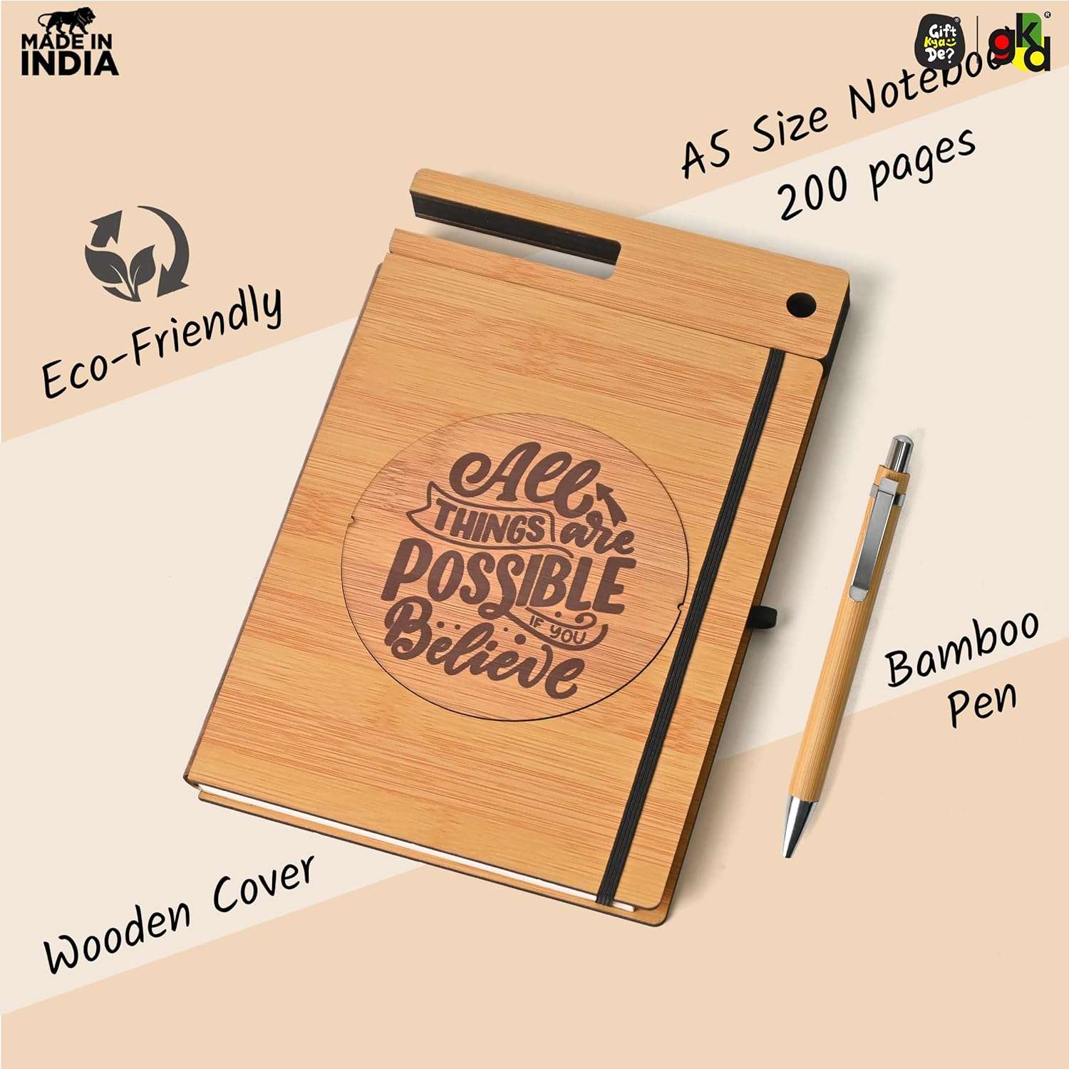Crafted with a sustainable bamboo cover, this eco-friendly notebook is lightweight, durable, and stylish. It features a built-in mobile stand and pen holder, making it perfect for professionals and students alike. The included premium bamboo pen ensures a smooth writing experience.